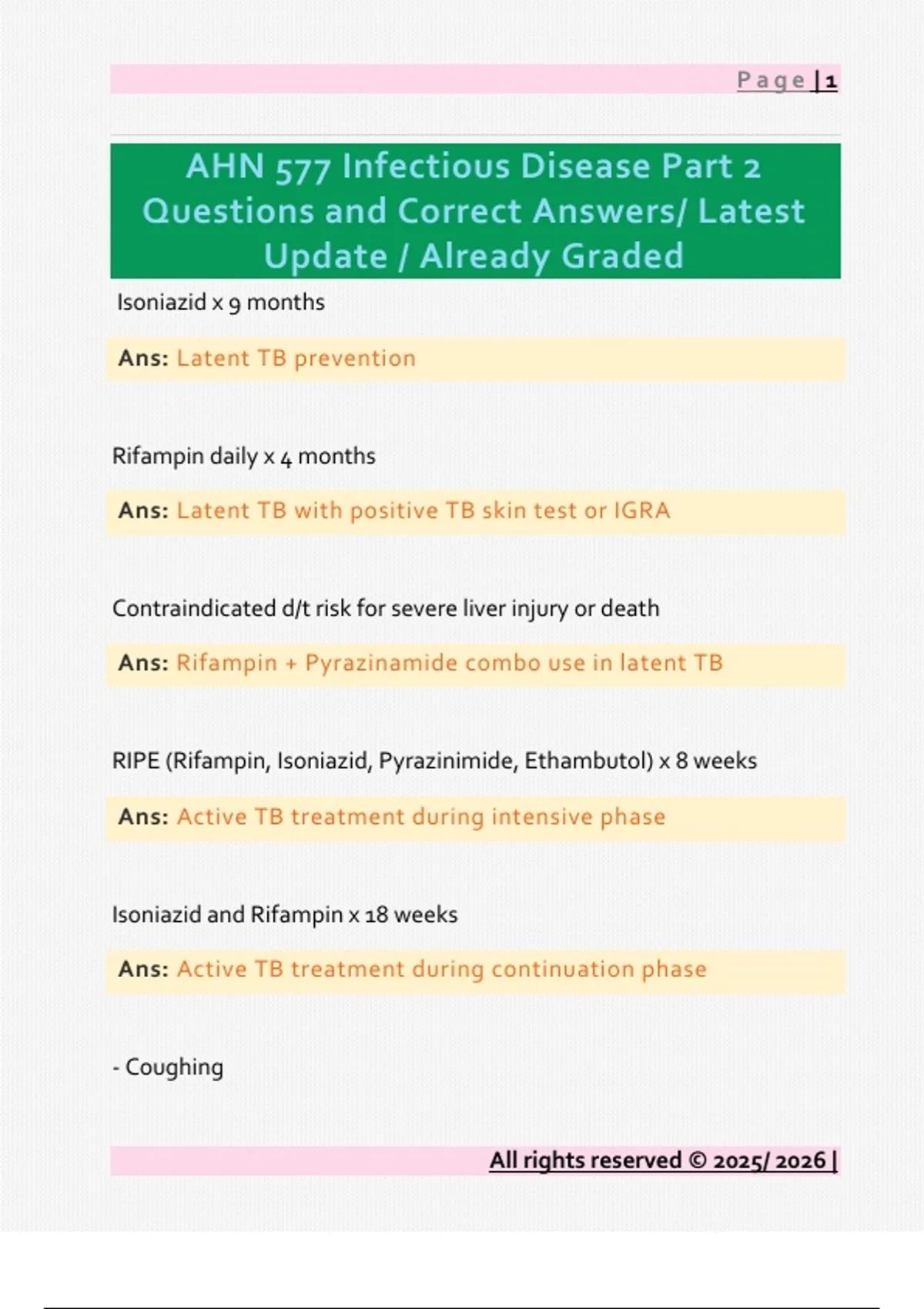 Ans: Rifampin + Pyrazinamide combo use in latent TB