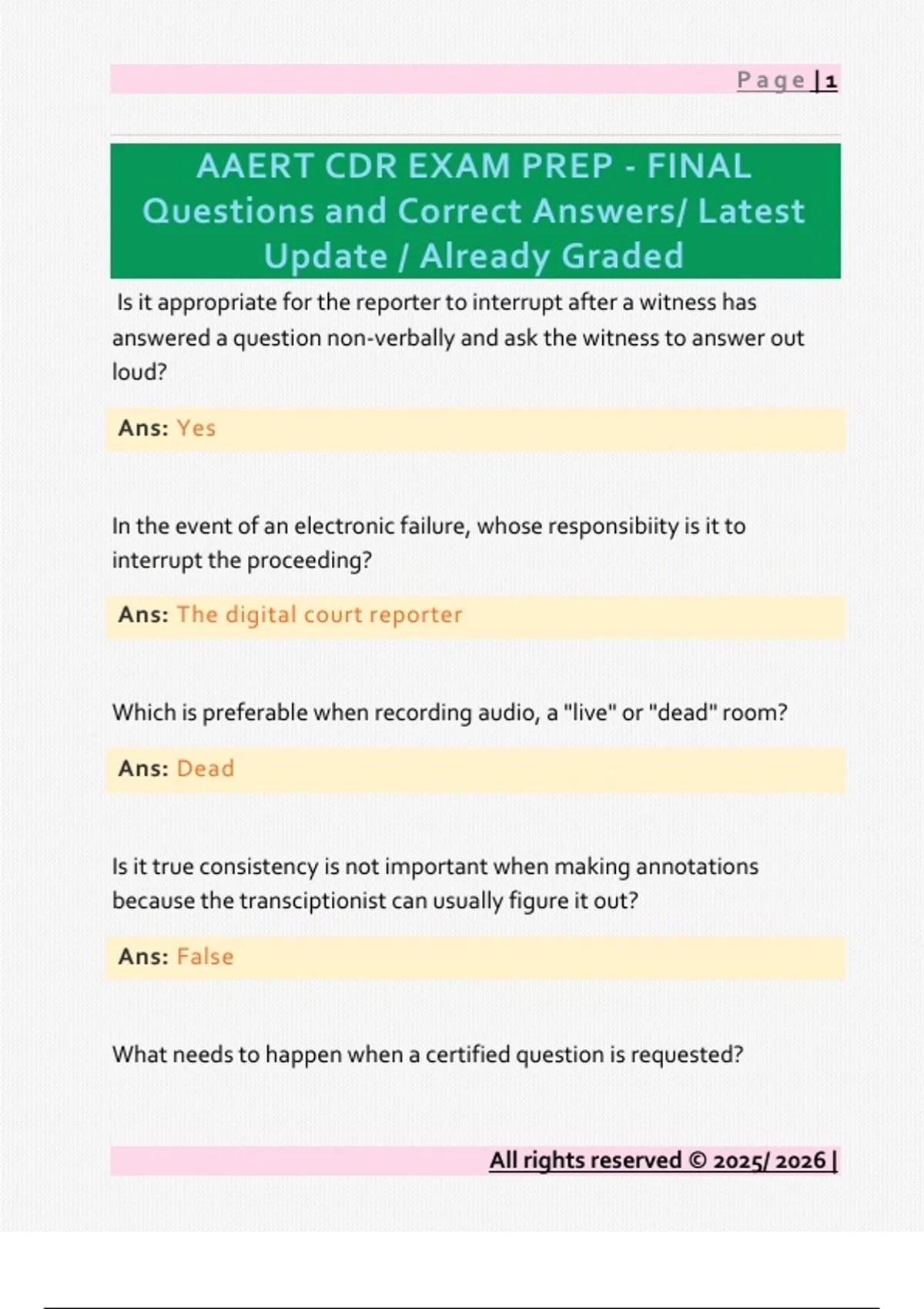AAERT CDR EXAM PREP - FINAL