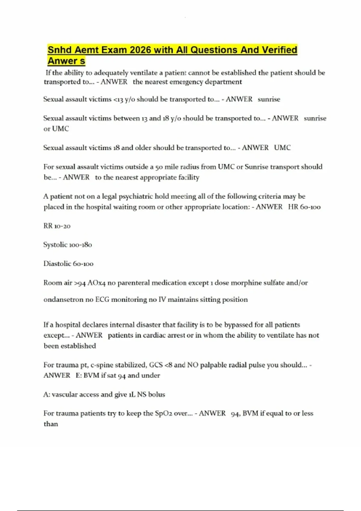 Snhd Aemt Exam 2026 with All Questions And Verified Anwers Snhd Aemt Exam 2026 with All Questions And Verified Anwers