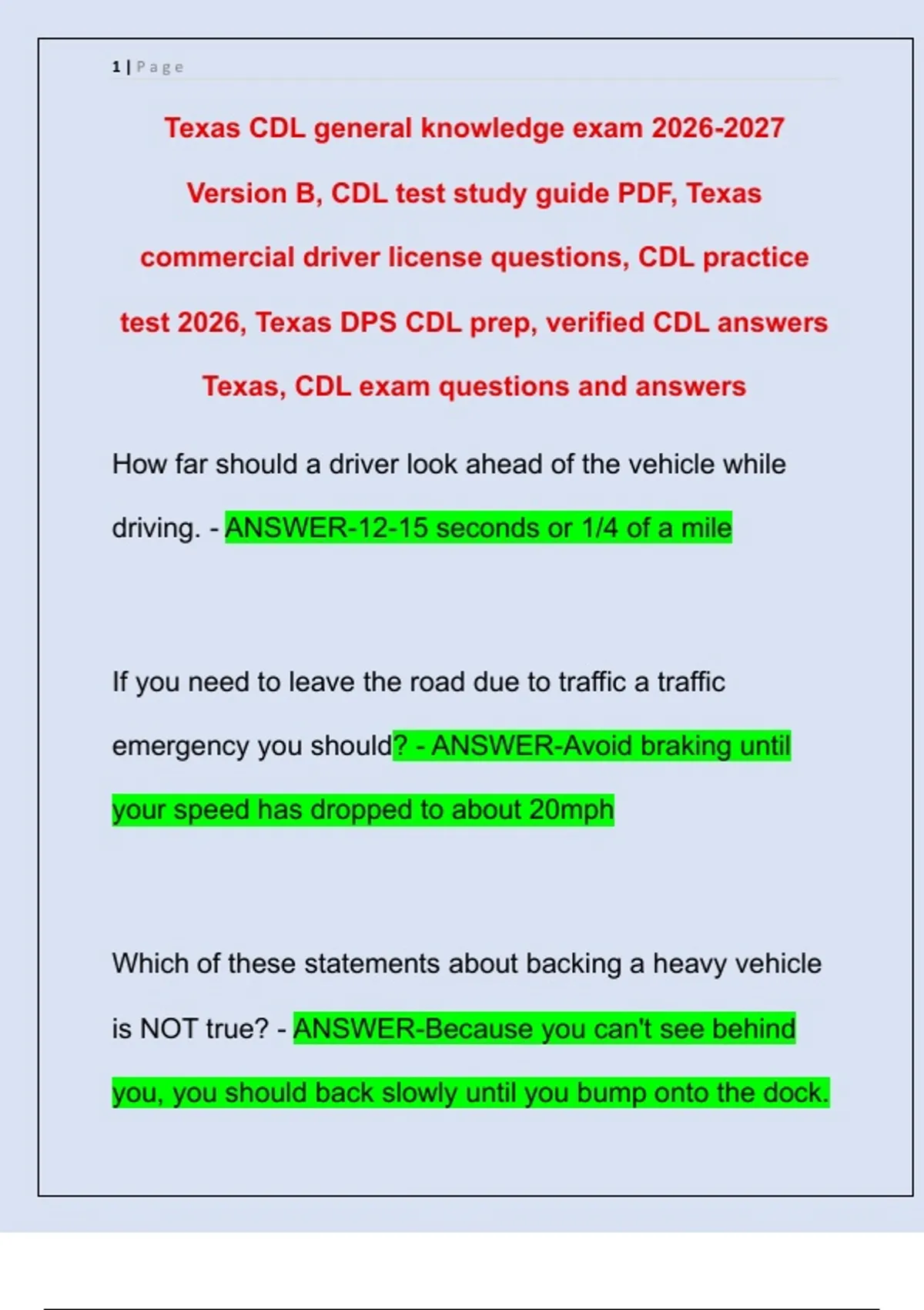 test 2026, Texas DPS CDL prep, verified CDL answers