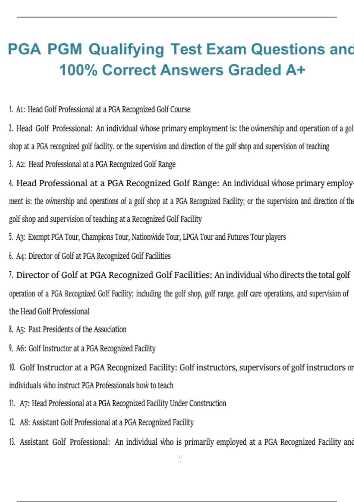 1. A1: Head Golf Professional at a PGA Recognized Golf Course