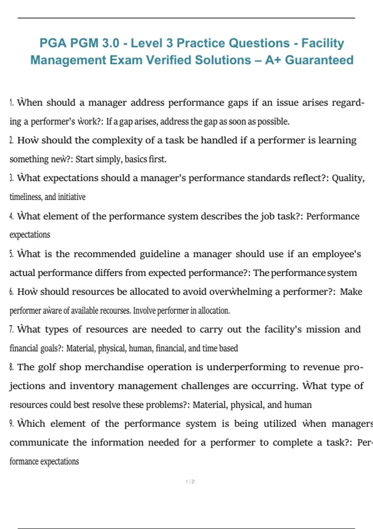 1. Ẁhen should a manager address performance gaps if an issue arises regard-