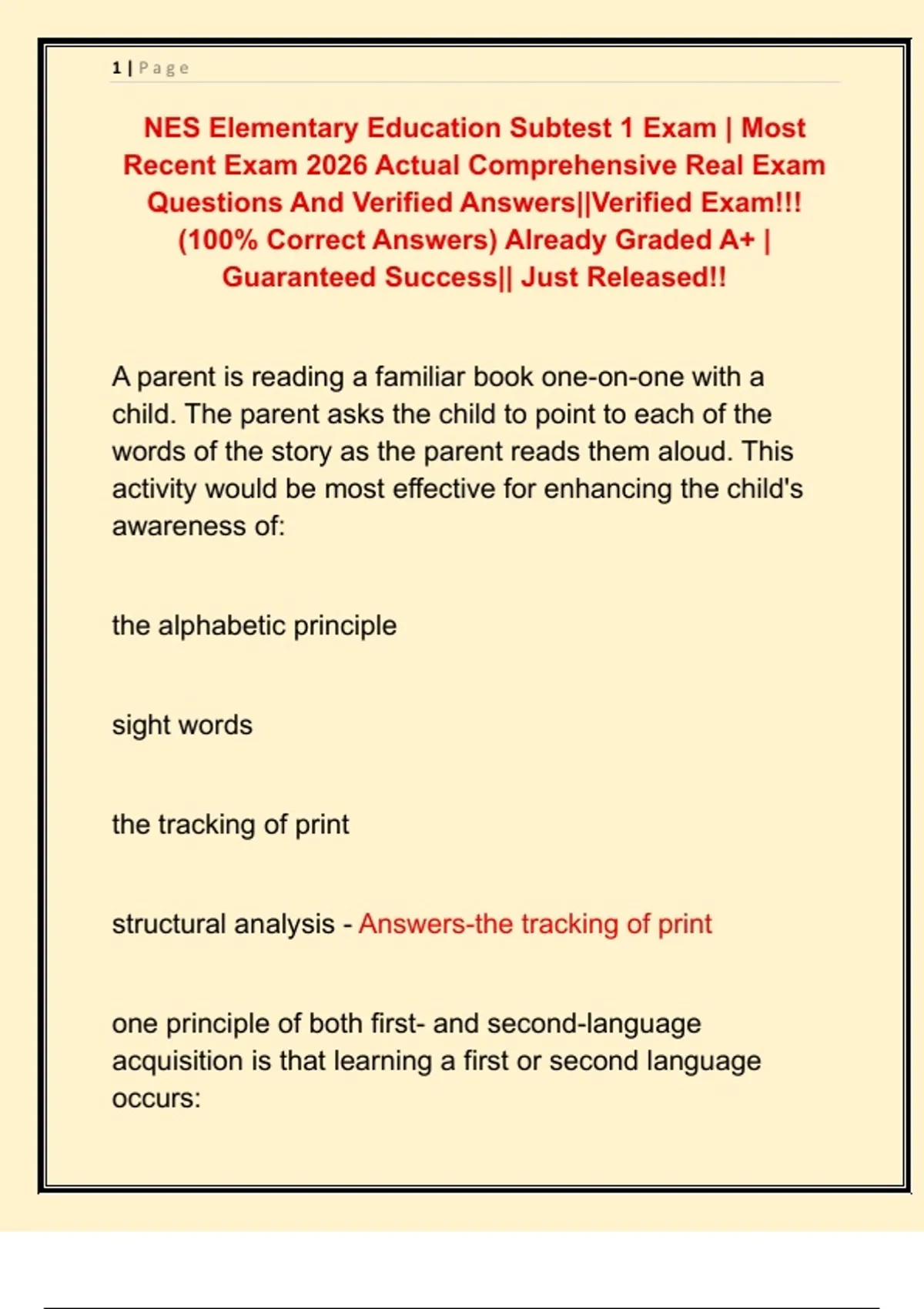 NES Elementary Education Subtest 1 Exam | Most