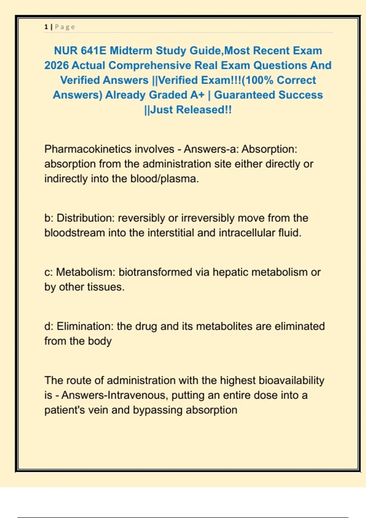 NUR 641E Midterm Study Guide,Most Recent Exam