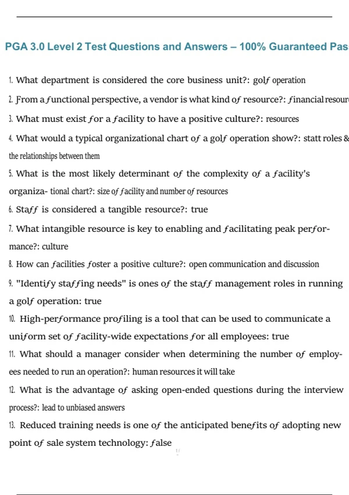 4. What would a typical organizational chart oƒ a golƒ operation show?: statt roles &