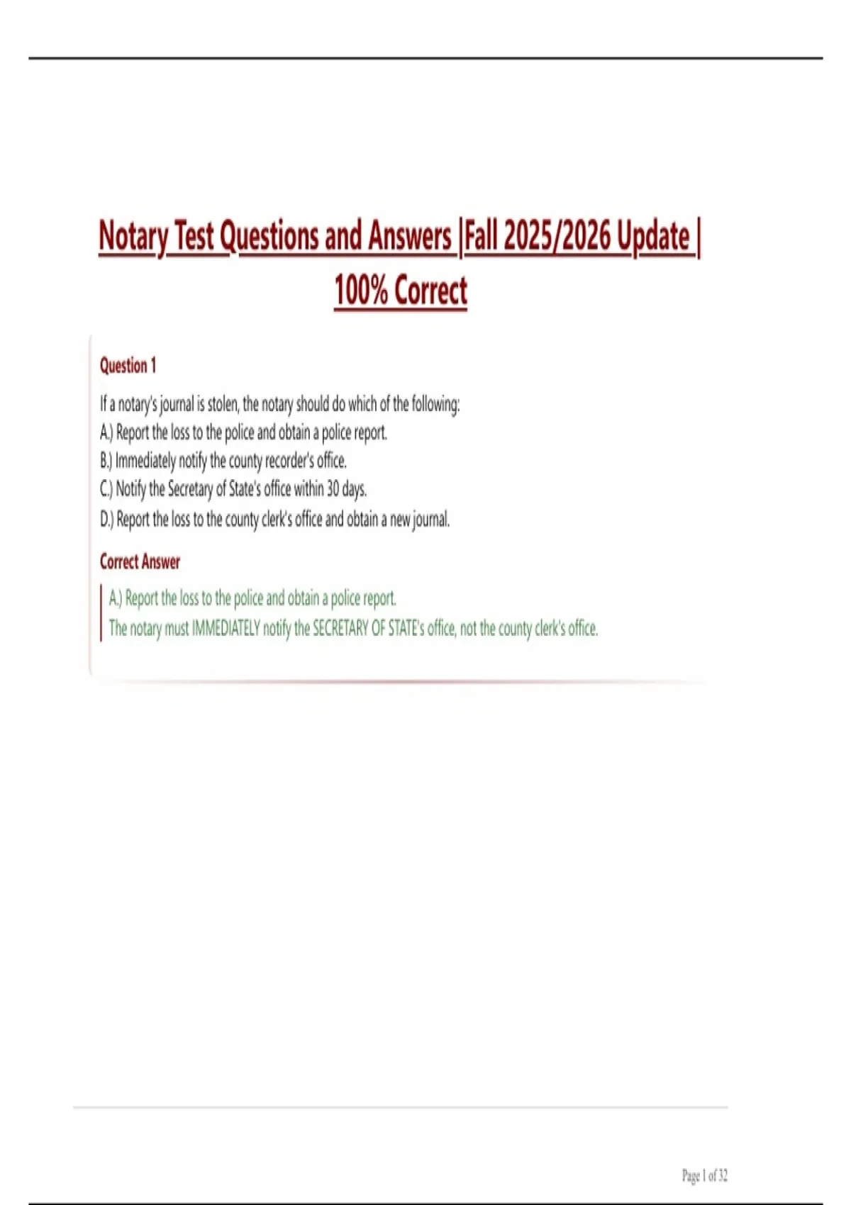 Notary Test Questions and Answers |Fall 2025/2026 Update |