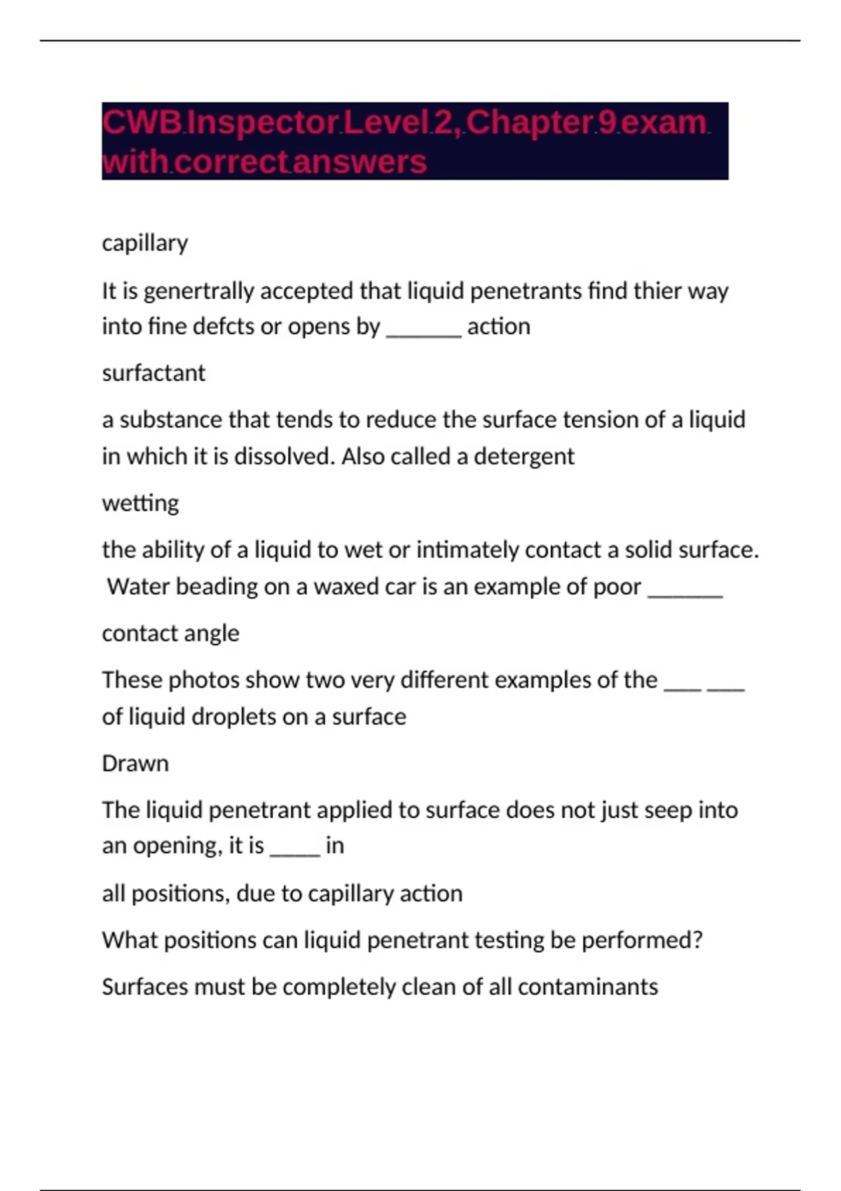 CWB Inspector Level 2, Chapter 9 exam ||\\||\\ ||\\||\\ ||\\||\\ ||\\||\\ ||\\||\\ ||\\||\\ ||\\||\\