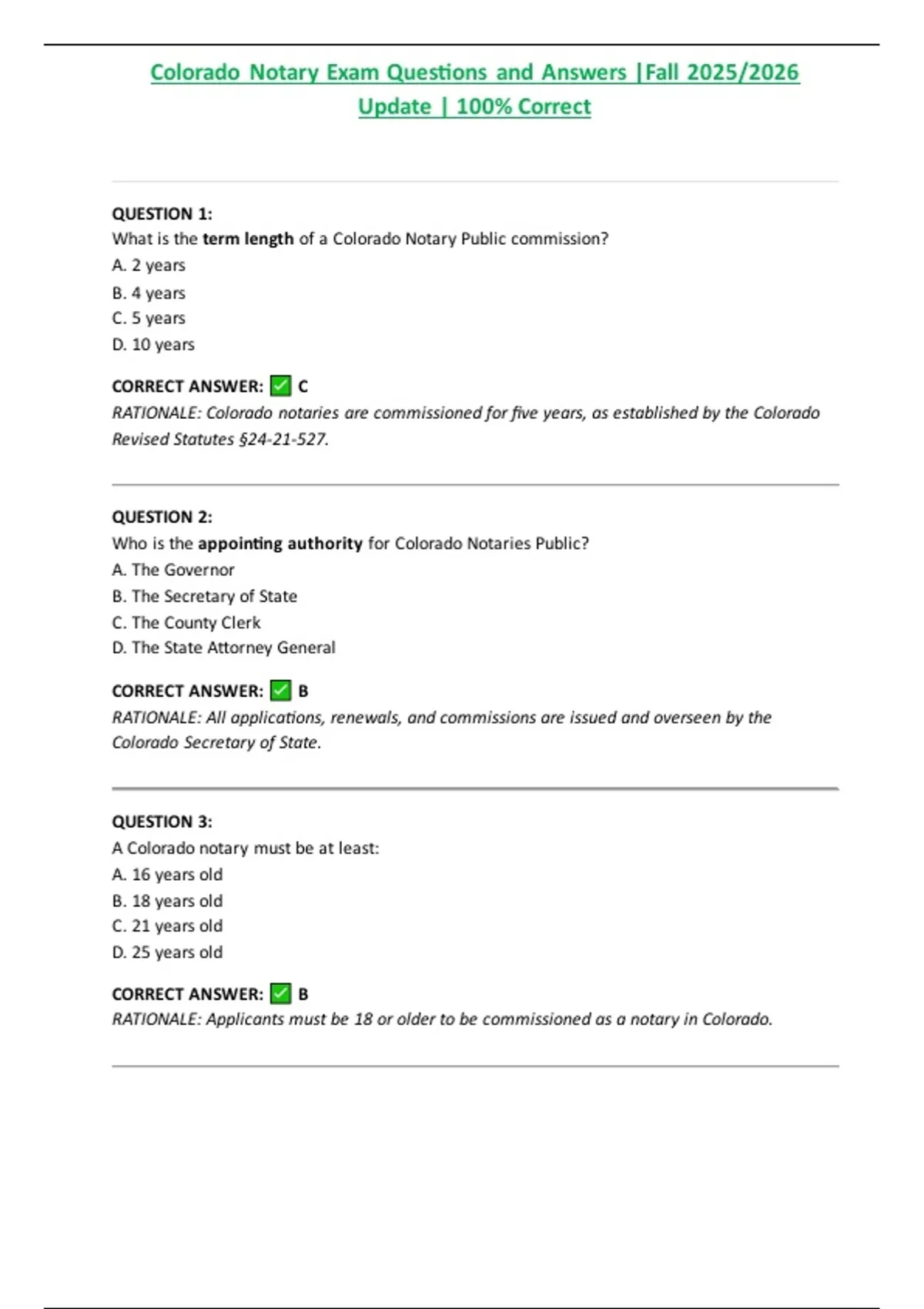 Colorado Notary Exam Questions and Answers |Fall 2025/2026