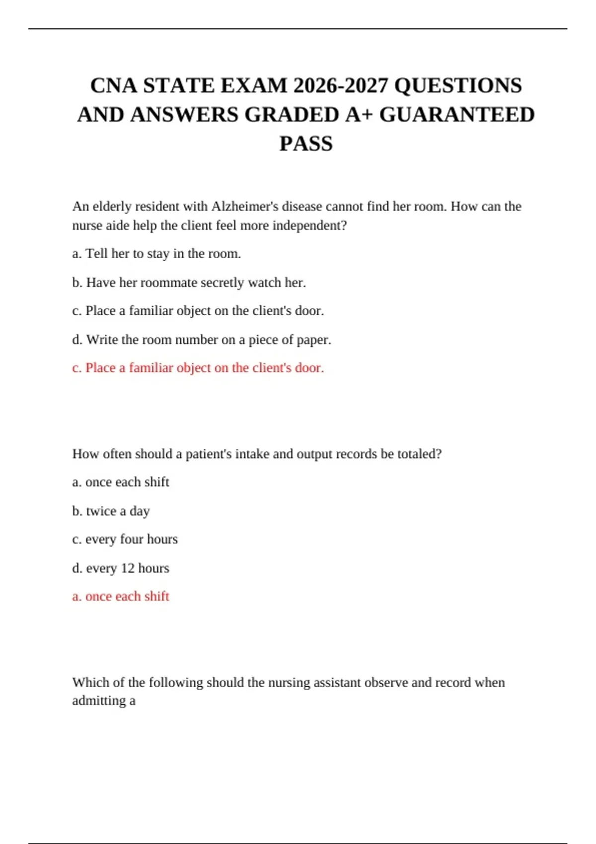 CNA STATE EXAM 2026-2027 QUESTIONS