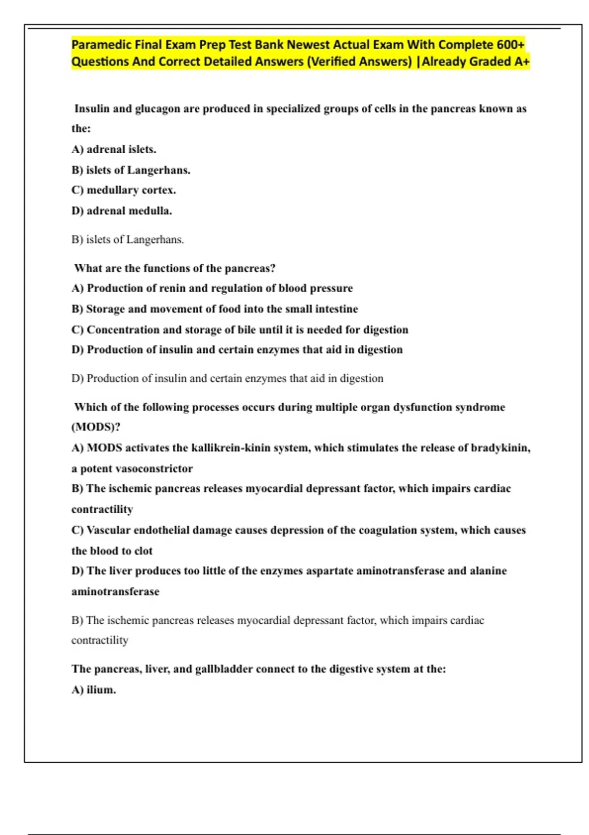 Paramedic Final Exam Prep Test Bank Newest Actual Exam With Complete 600+