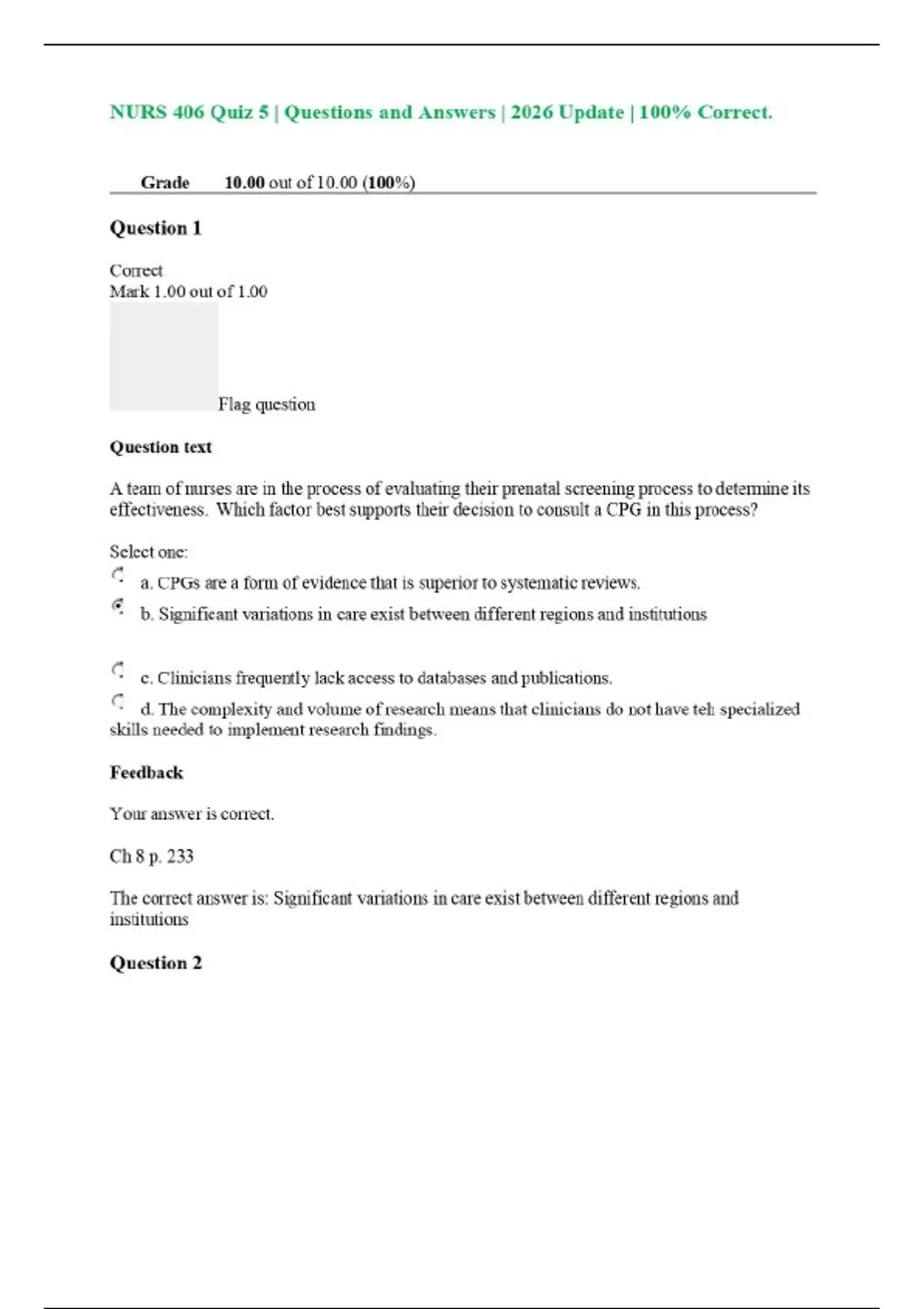 NURS 406 Quiz 5 | Questions and Answers | 2026 Update | 100% Correct.