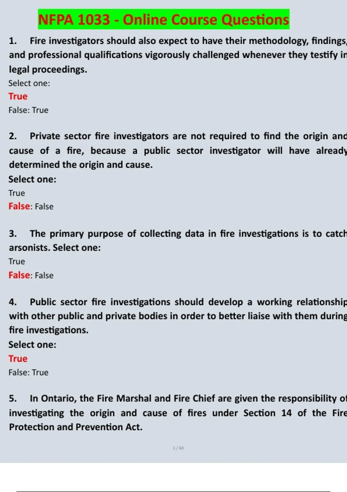 d. NFPA 1033 is the Standard for Professional Qualification for Fire Investiga-