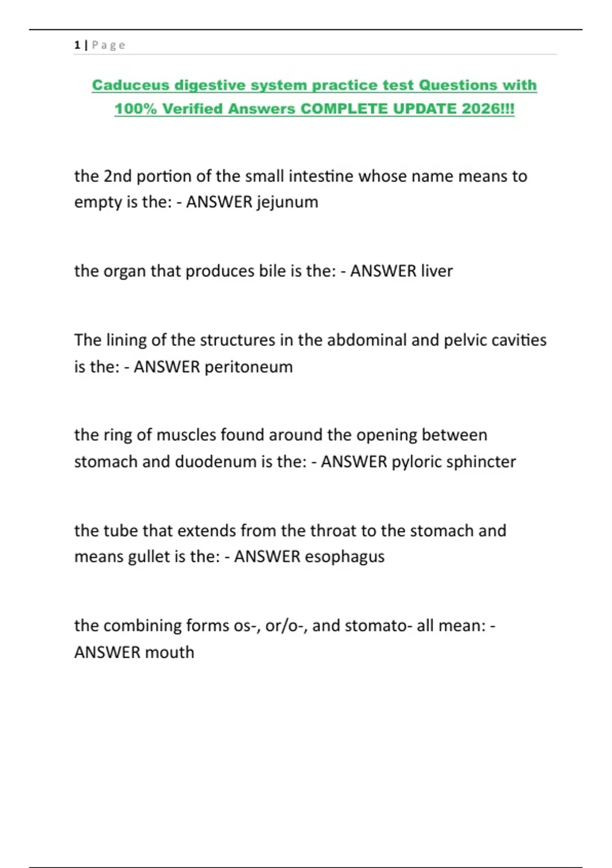 Caduceus digestive system practice test Questions with