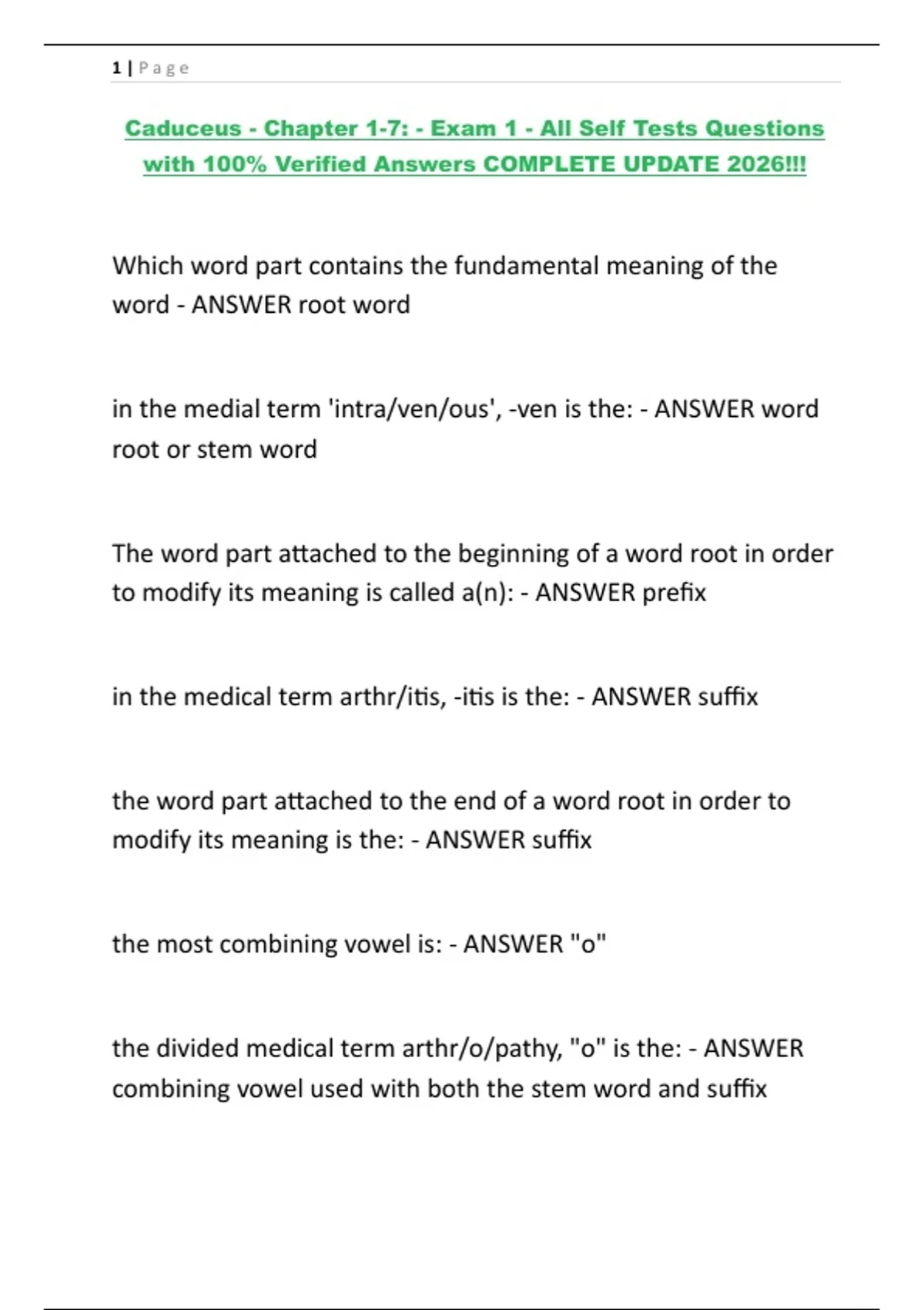 Caduceus - Chapter 1-7: - Exam 1 - All Self Tests Questions