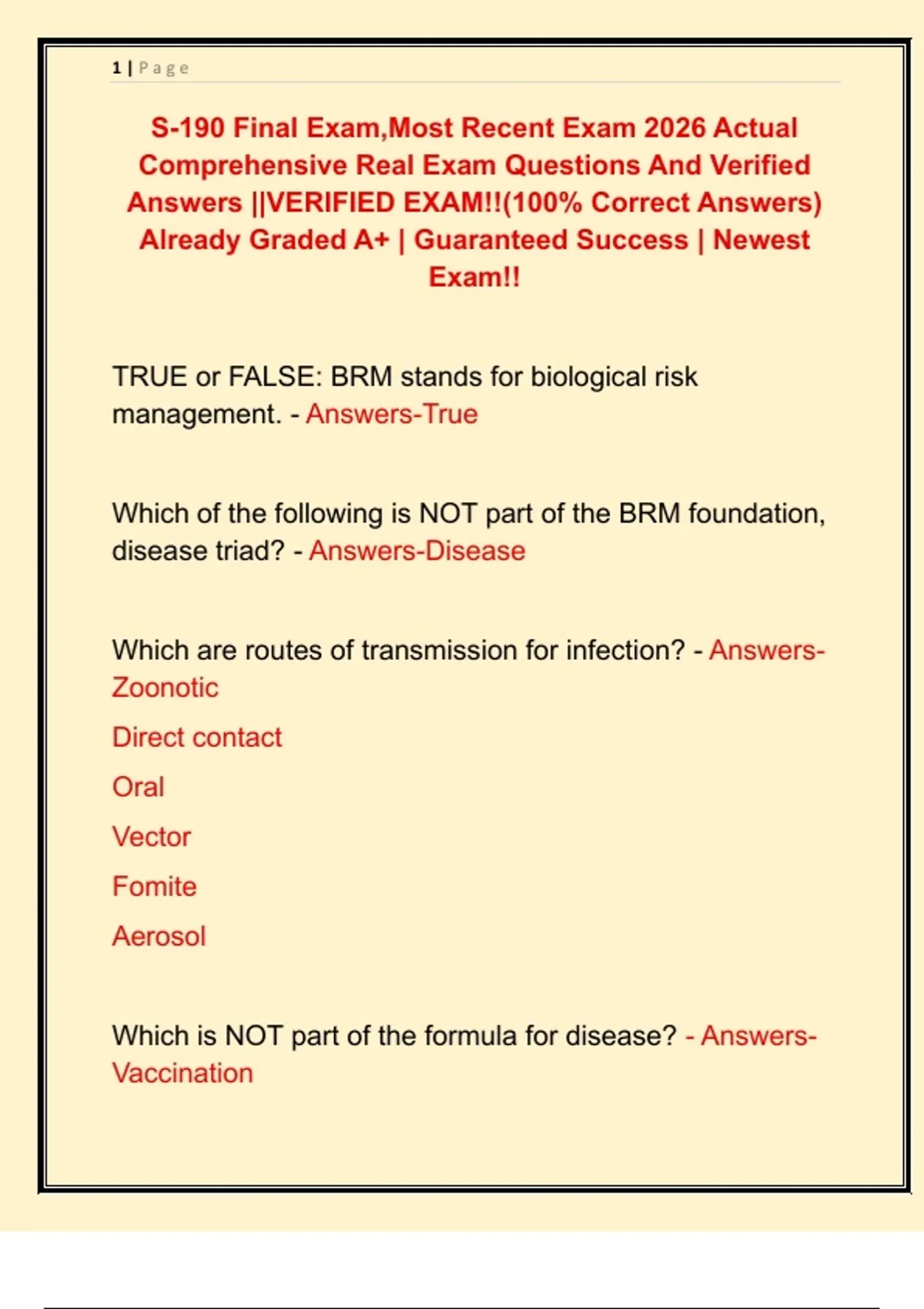 S-190 Final Exam,Most Recent Exam 2026 Actual
