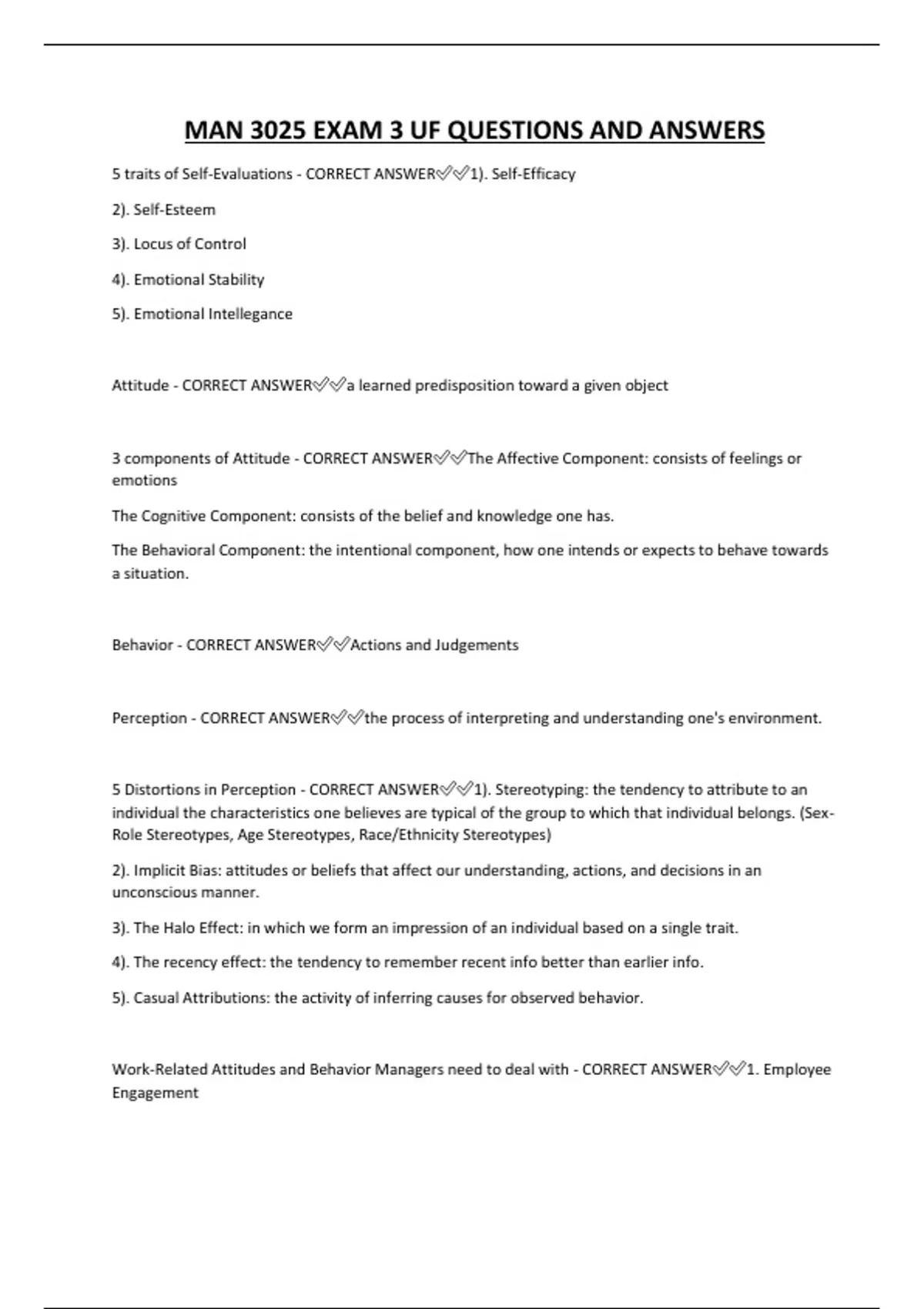 MAN 3025 EXAM 3 UF QUESTIONS AND ANSWERS