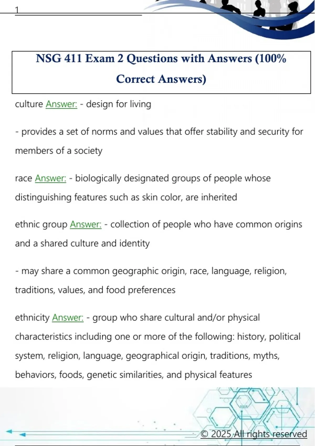 ethnicity Answer: - group who share cultural and/or physical