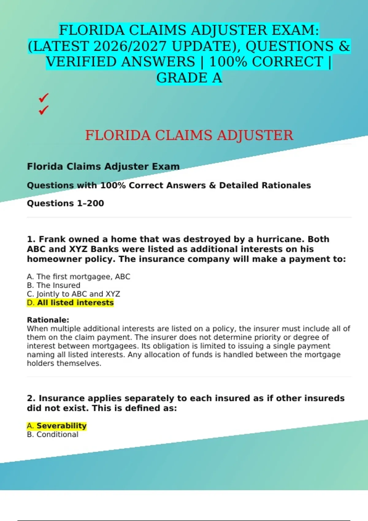 1. Frank owned a home that was destroyed by a hurricane. Both