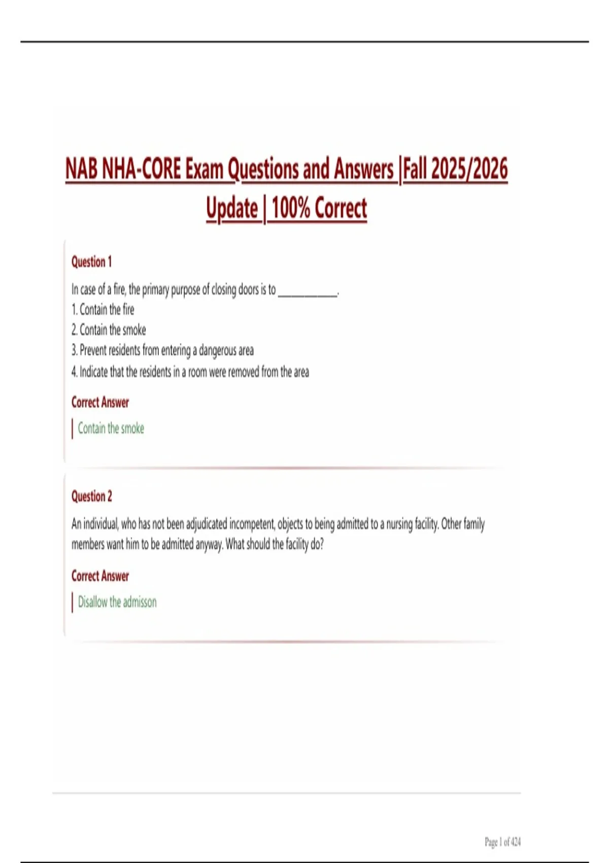 NAB NHA-CORE Exam Questions and Answers |Fall 2025/2026