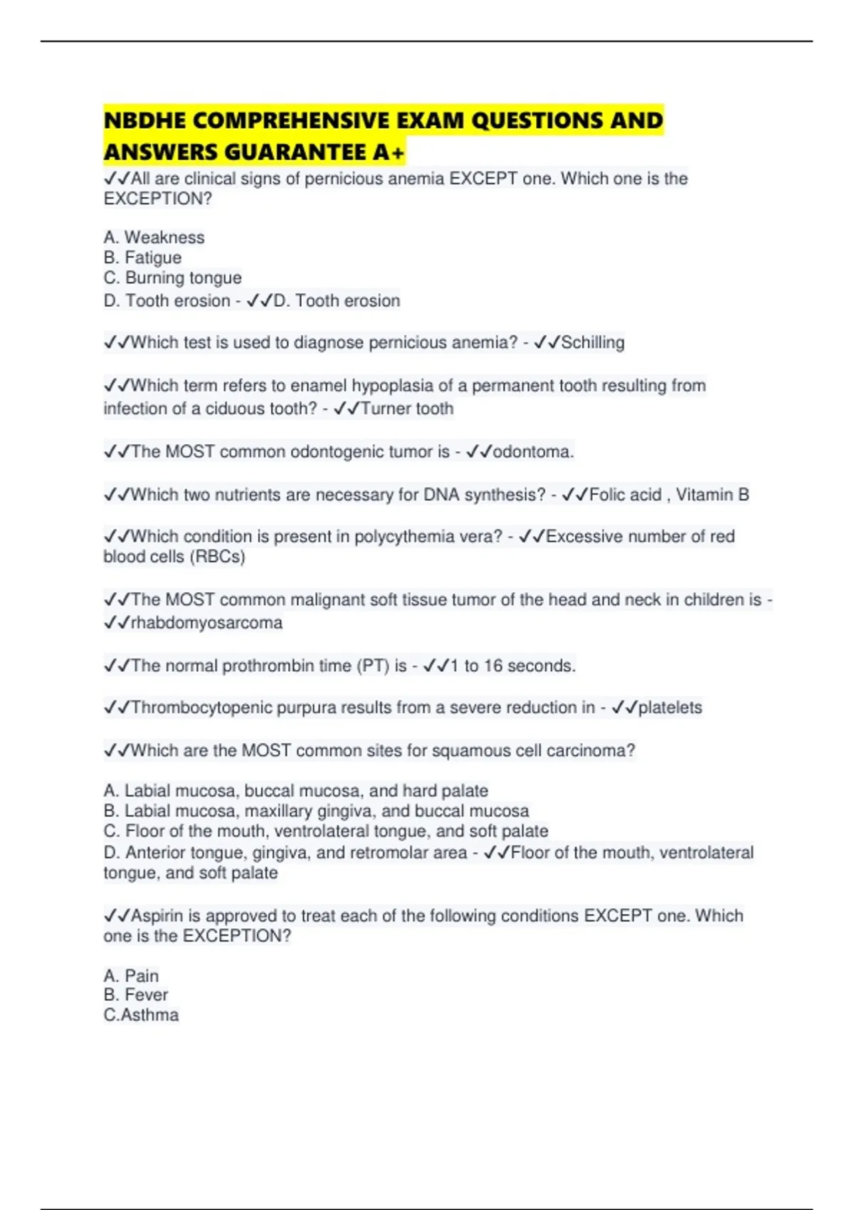 ANSWERS GUARANTEE A+