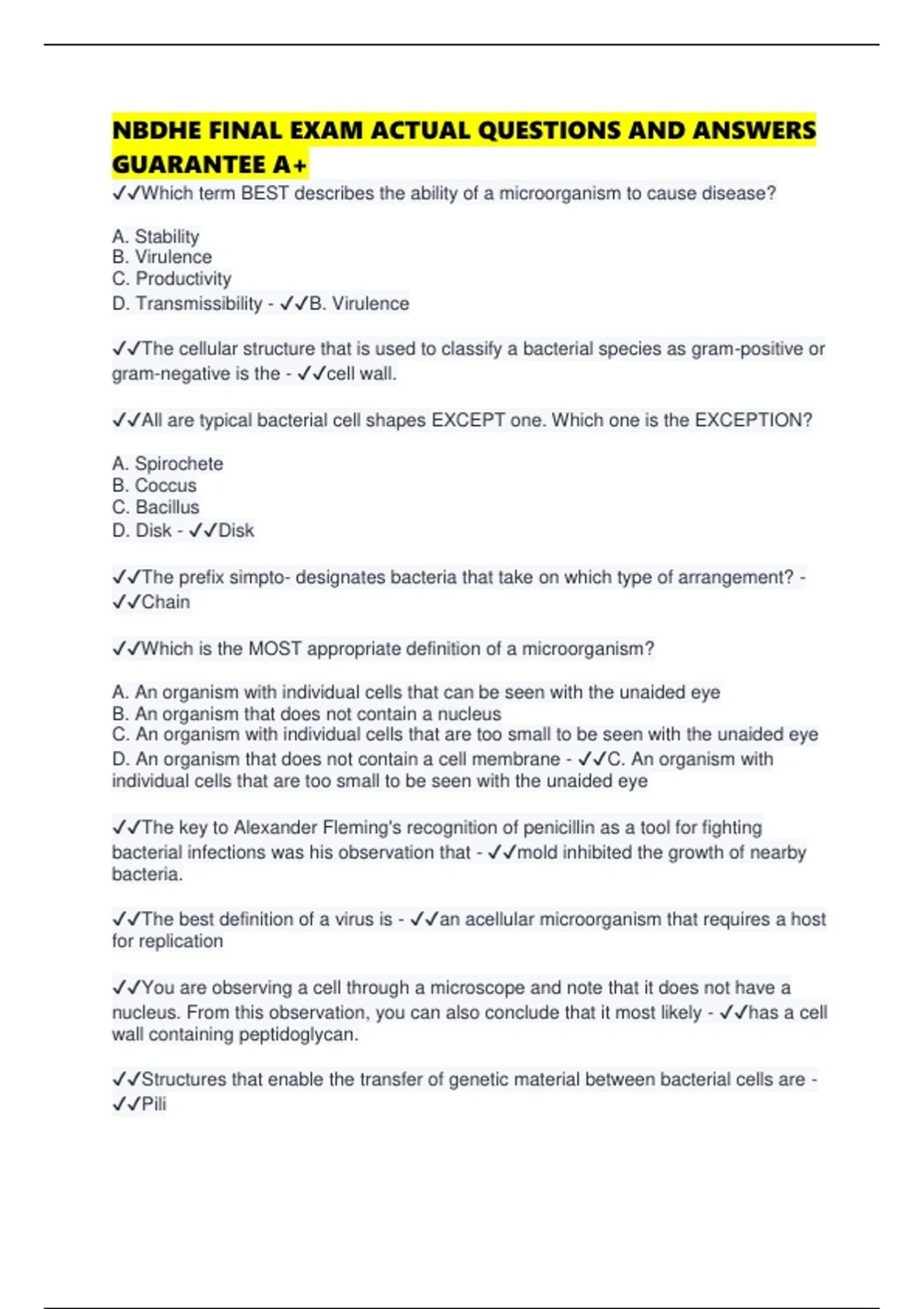 ✔✔The best definition of a virus is - ✔✔an acellular microorganism that requires a host