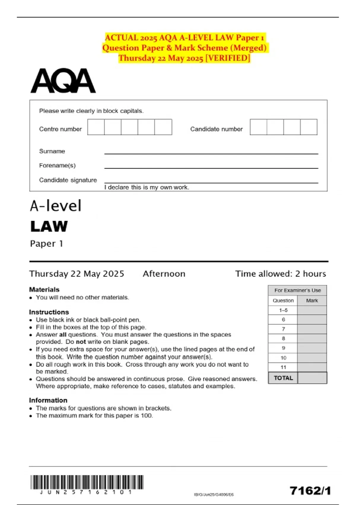 Question Paper & Mark Scheme (Merged)