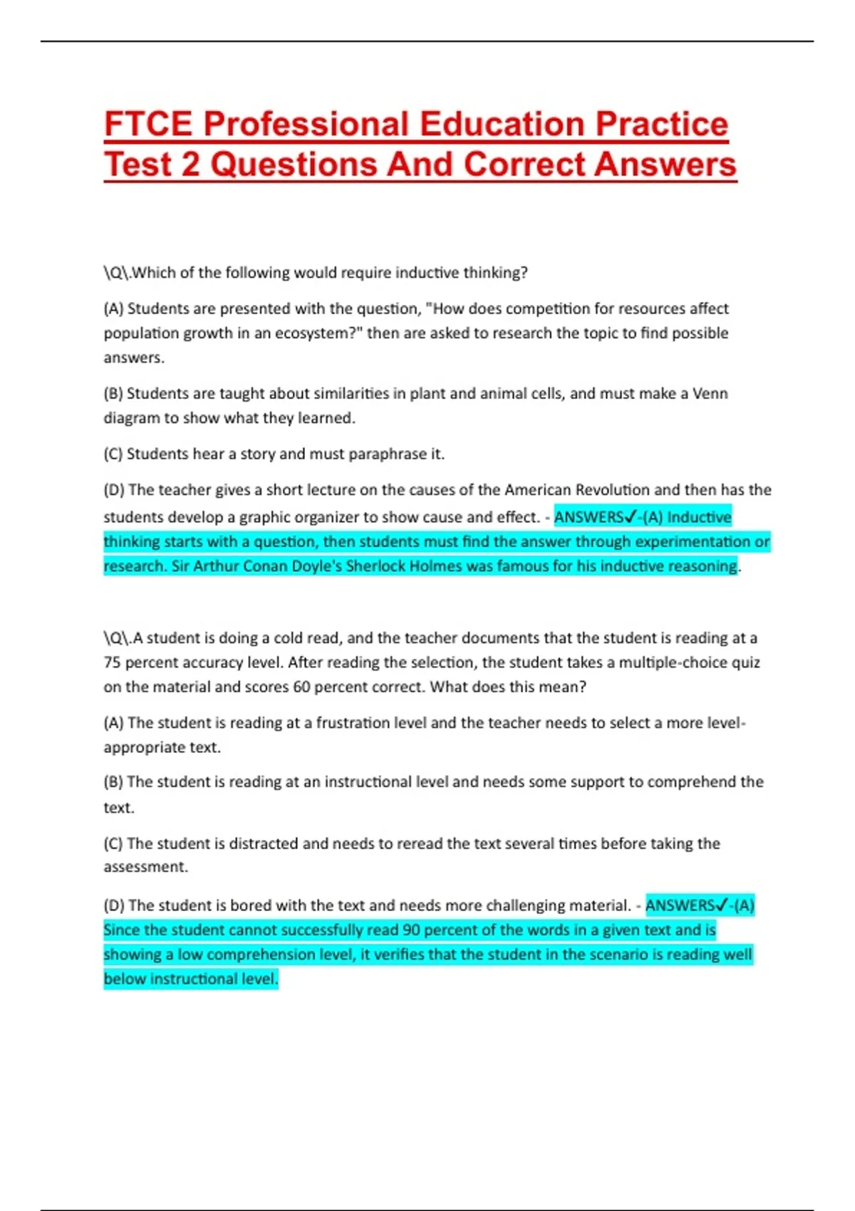 (D) Flu - ANSWERS✔-(B) When a student decodes words, he or she must sound the words, then