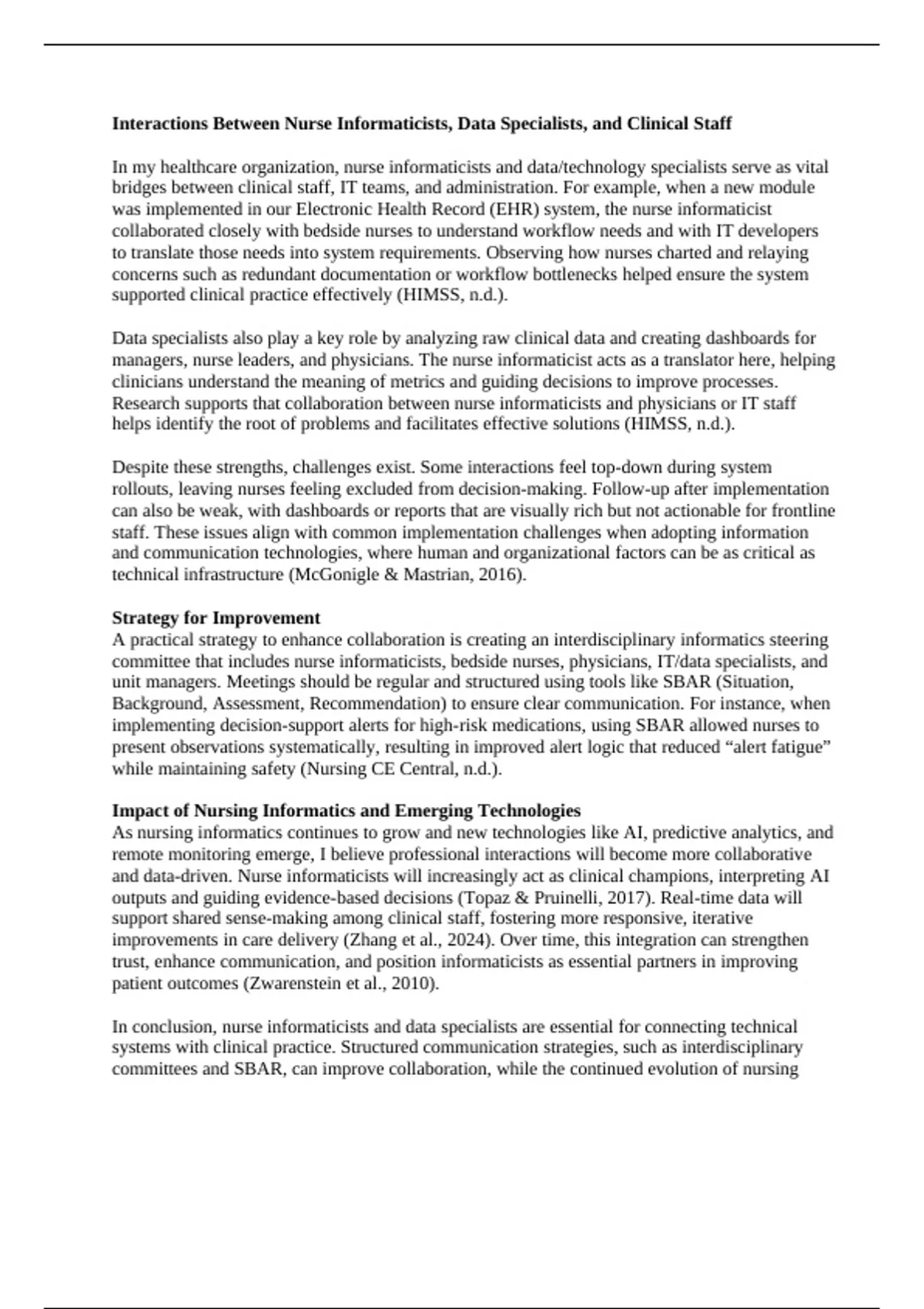 managers, nurse leaders, and physicians. The nurse informaticist acts as a translator here, helping