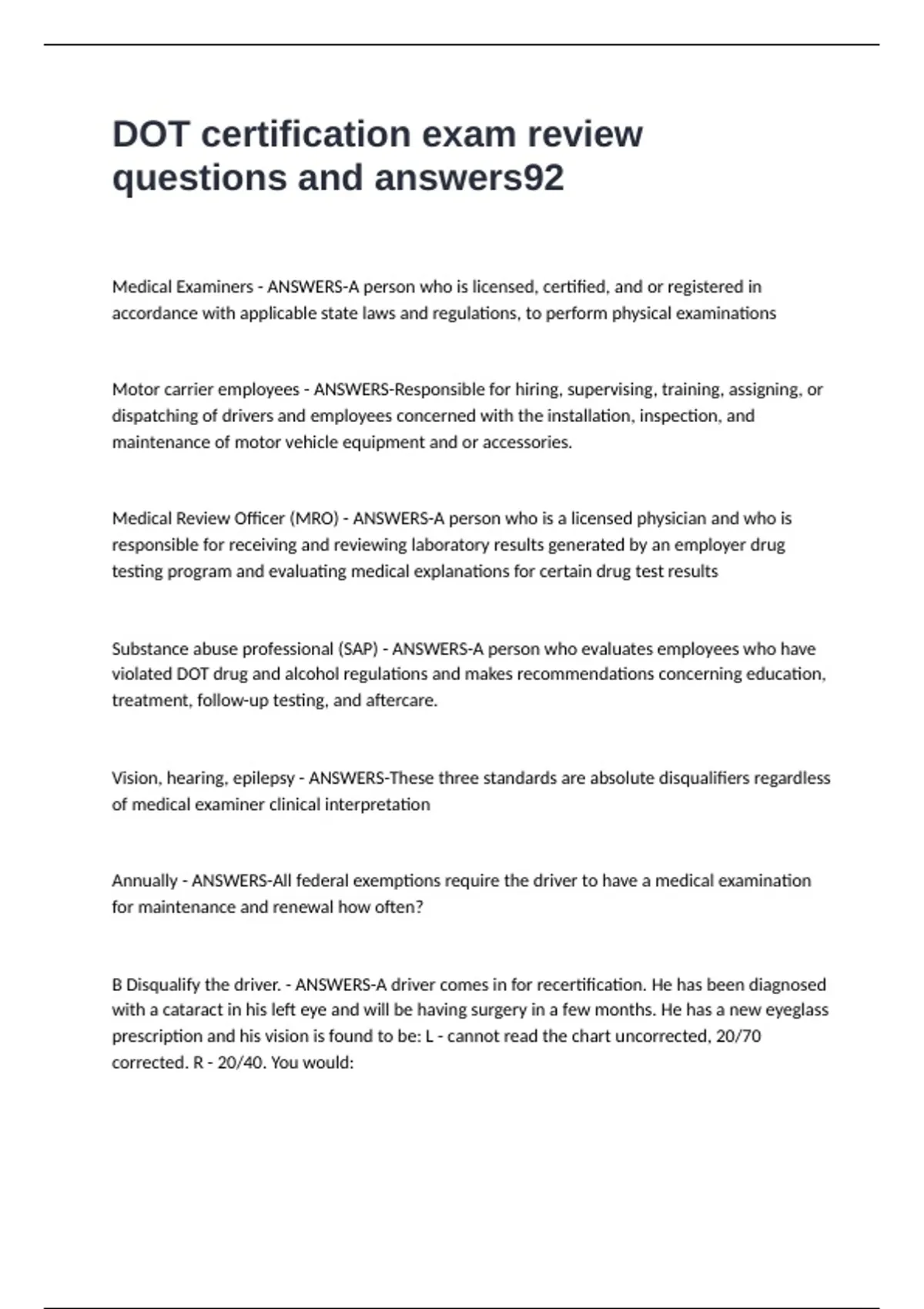 B Disqualify the driver. - ANSWERS-A driver comes in for recertification. He has been diagnosed
