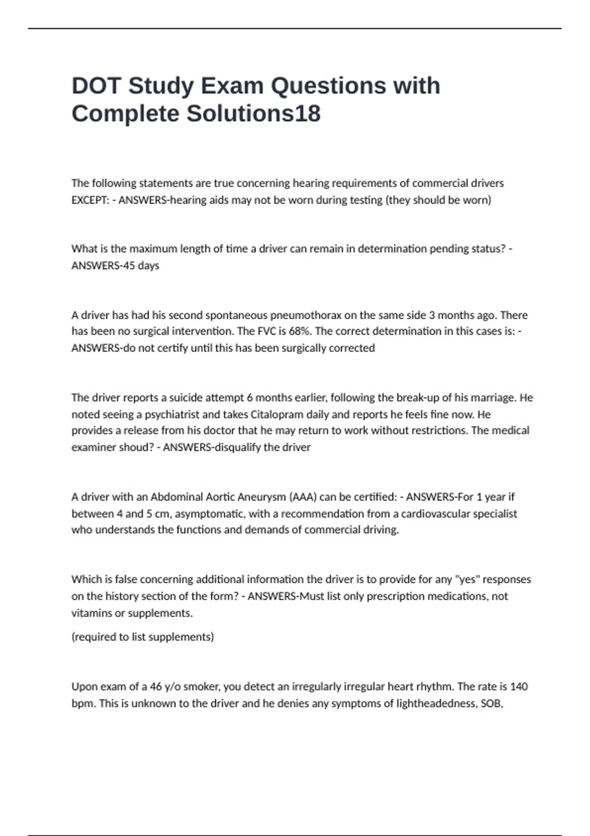 A driver with an Abdominal Aortic Aneurysm (AAA) can be certified: - ANSWERS-For 1 year if