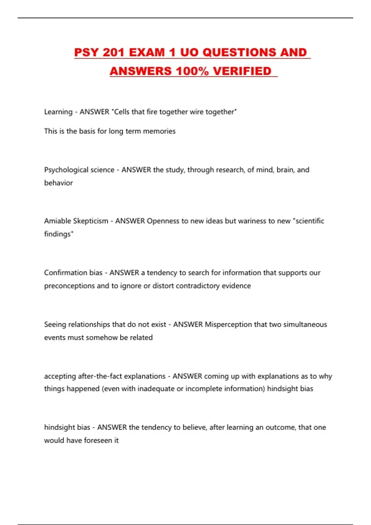 PSY 201 EXAM 1 UO QUESTIONS AND ANSWERS 100% VERIFIED ...