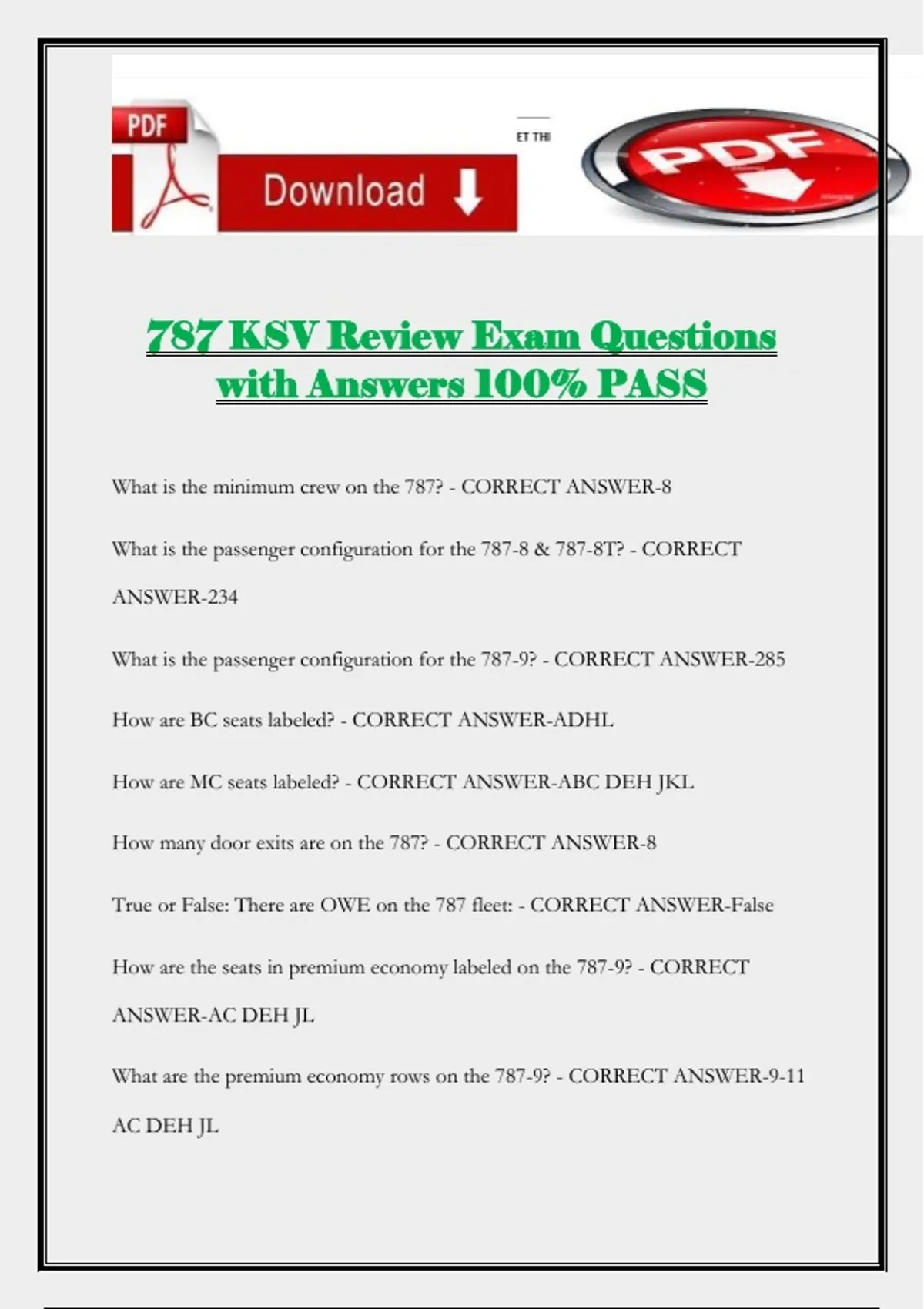 787 KSV Review Exam Questions