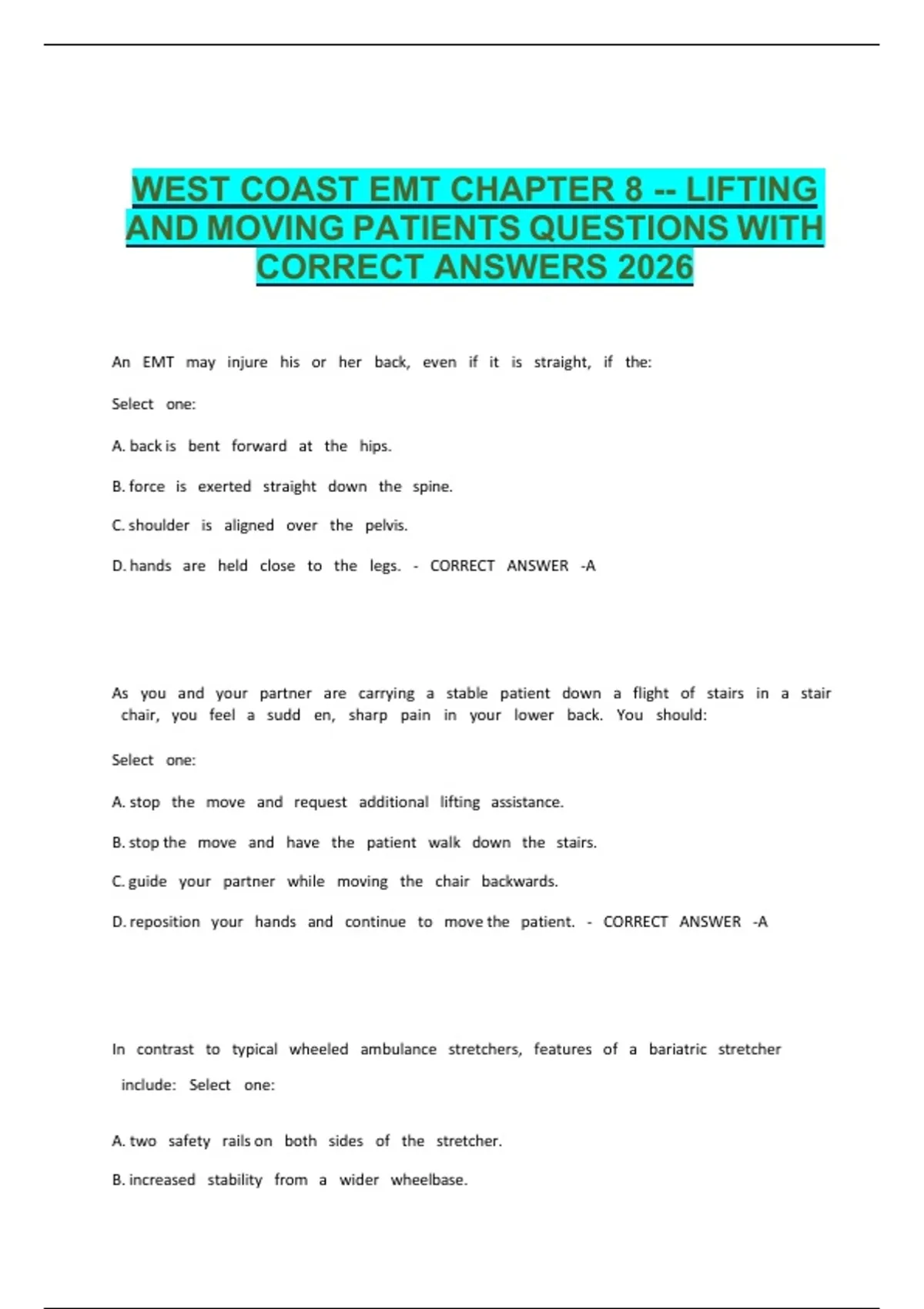WEST COAST EMT CHAPTER 8 -- LIFTING