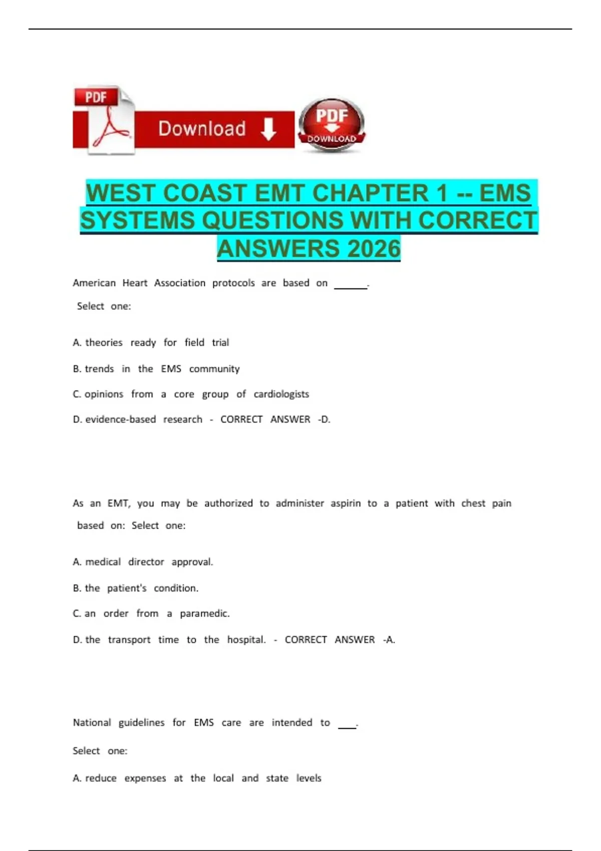 WEST COAST EMT CHAPTER 1 - EMS SYSTEMS QUESTIONS WITH CORRECT ANSWERS 2026