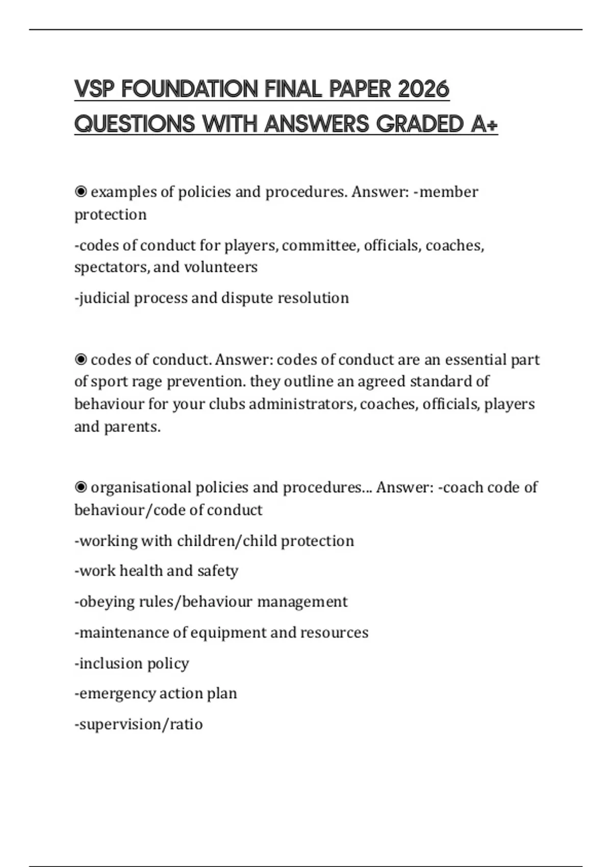 VSP FOUNDATION FINAL PAPER 2026 QUESTIONS WITH ANSWERS GRADED A+