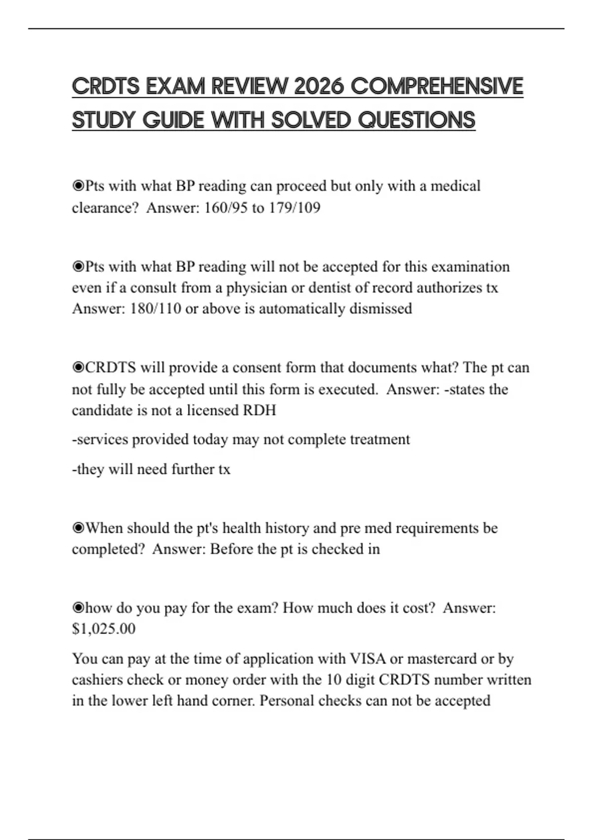 CRDTS EXAM REVIEW 2026 COMPREHENSIVE STUDY GUIDE WITH SOLVED QUESTIONS