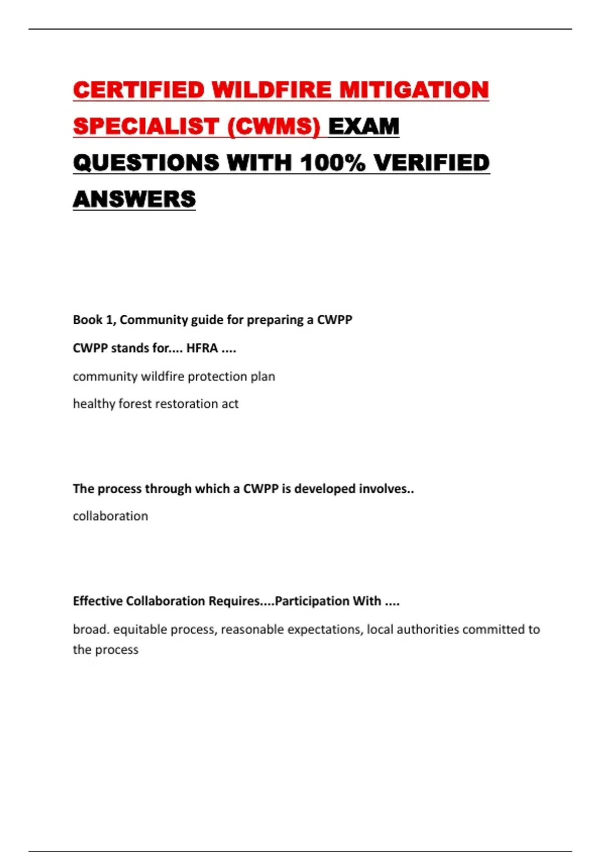 CWPP stands for.... HFRA ....