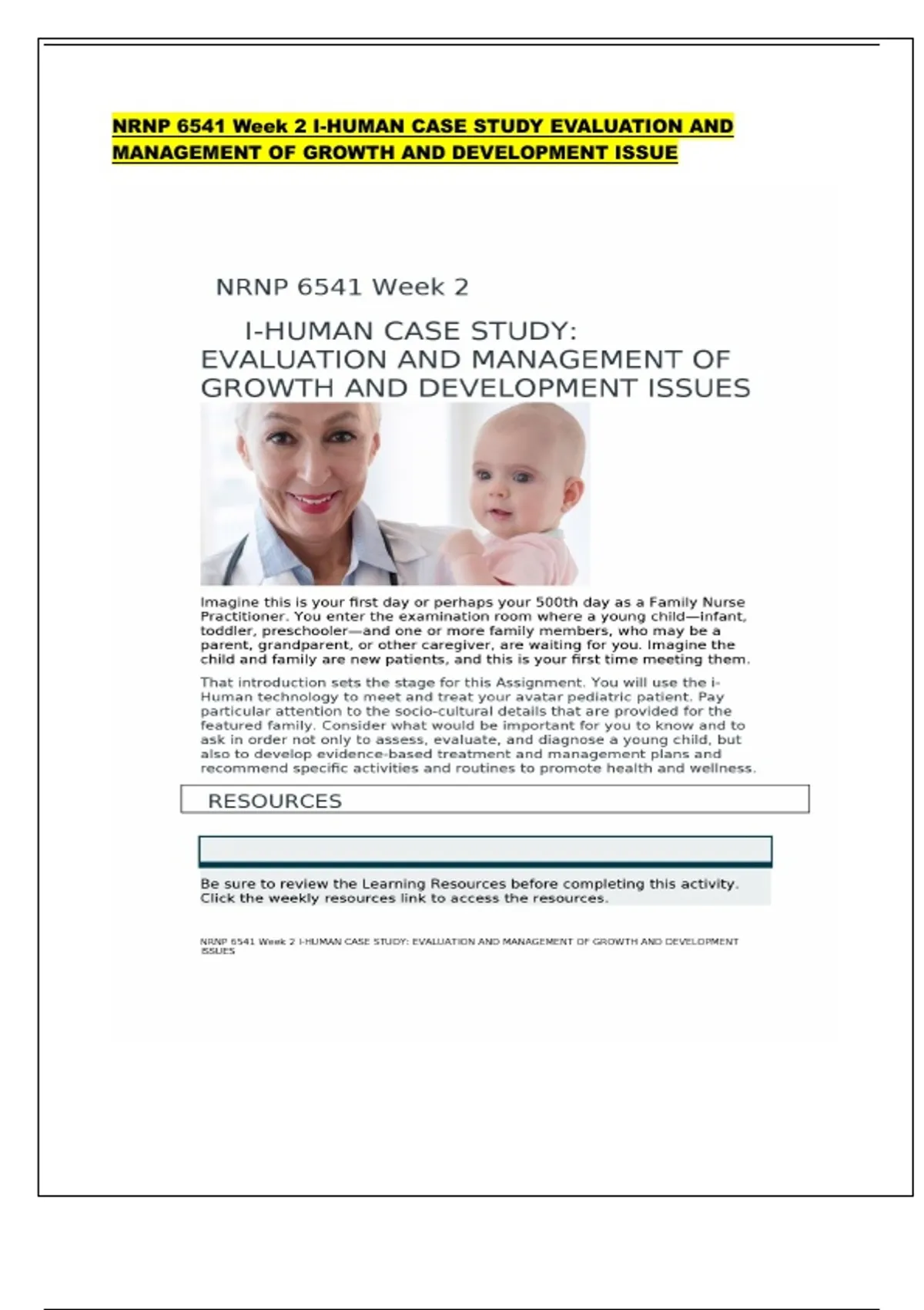 NRNP 6541 Week 2 I-HUMAN CASE STUDY EVALUATION AND MANAGEMENT OF GROWTH AND DEVELOPMENT ISSUE