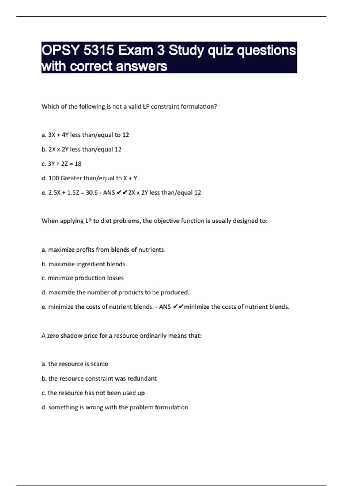 e. minimize the costs of nutrient blends. - ANS ✔✔minimize the costs of nutrient blends.