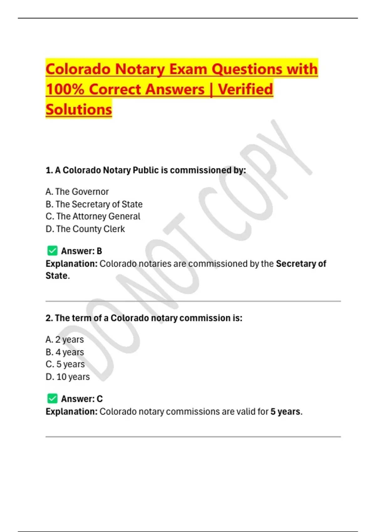 Colorado Notary Exam Questions with