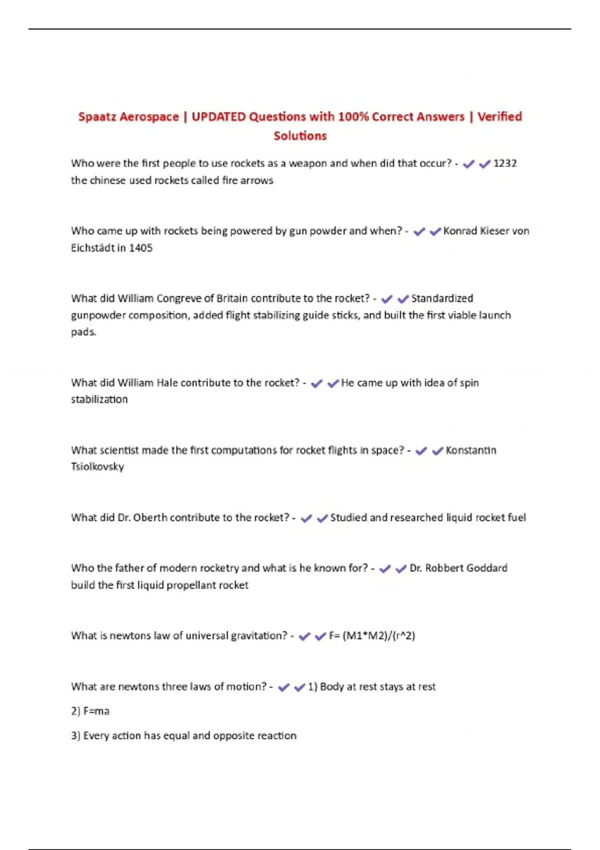 Spaatz Aerospace | UPDATED Questions with 100% Correct Answers | Verified Solutions