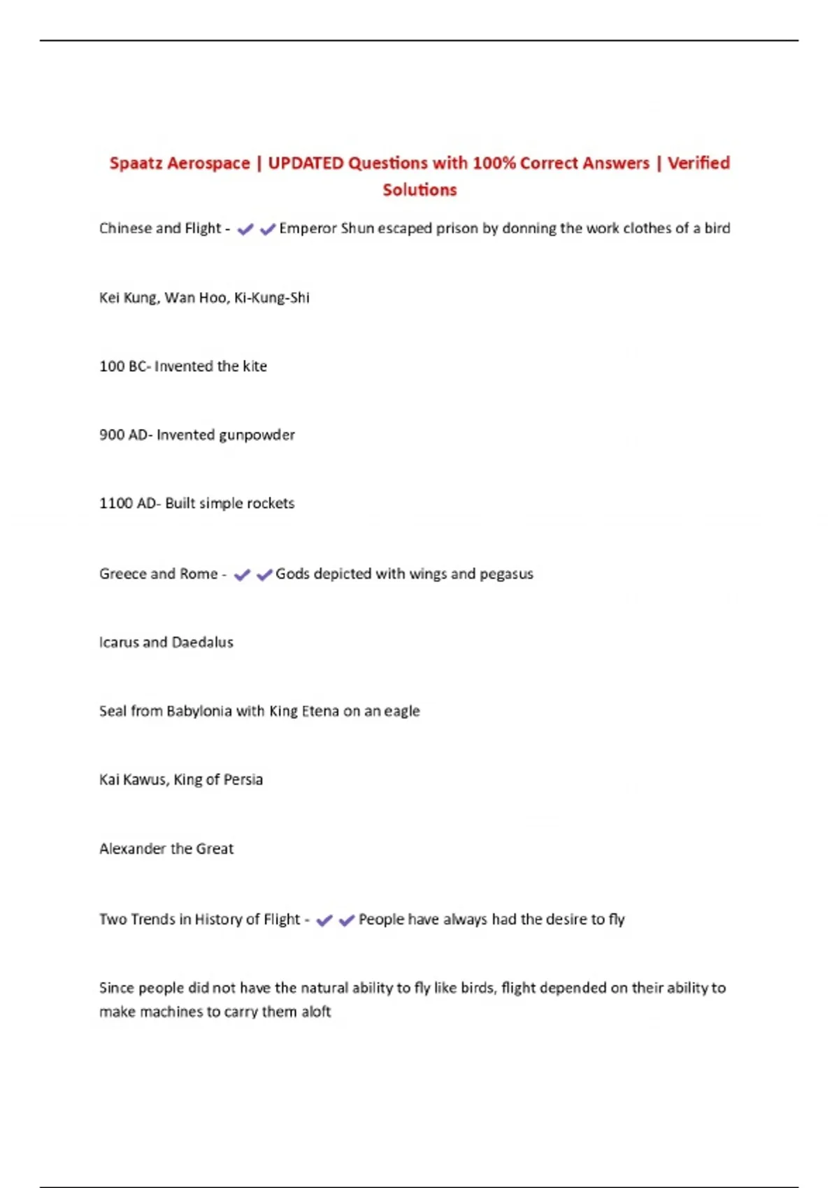 Spaatz Aerospace | UPDATED Questions with 100% Correct Answers | Verified Solutions
