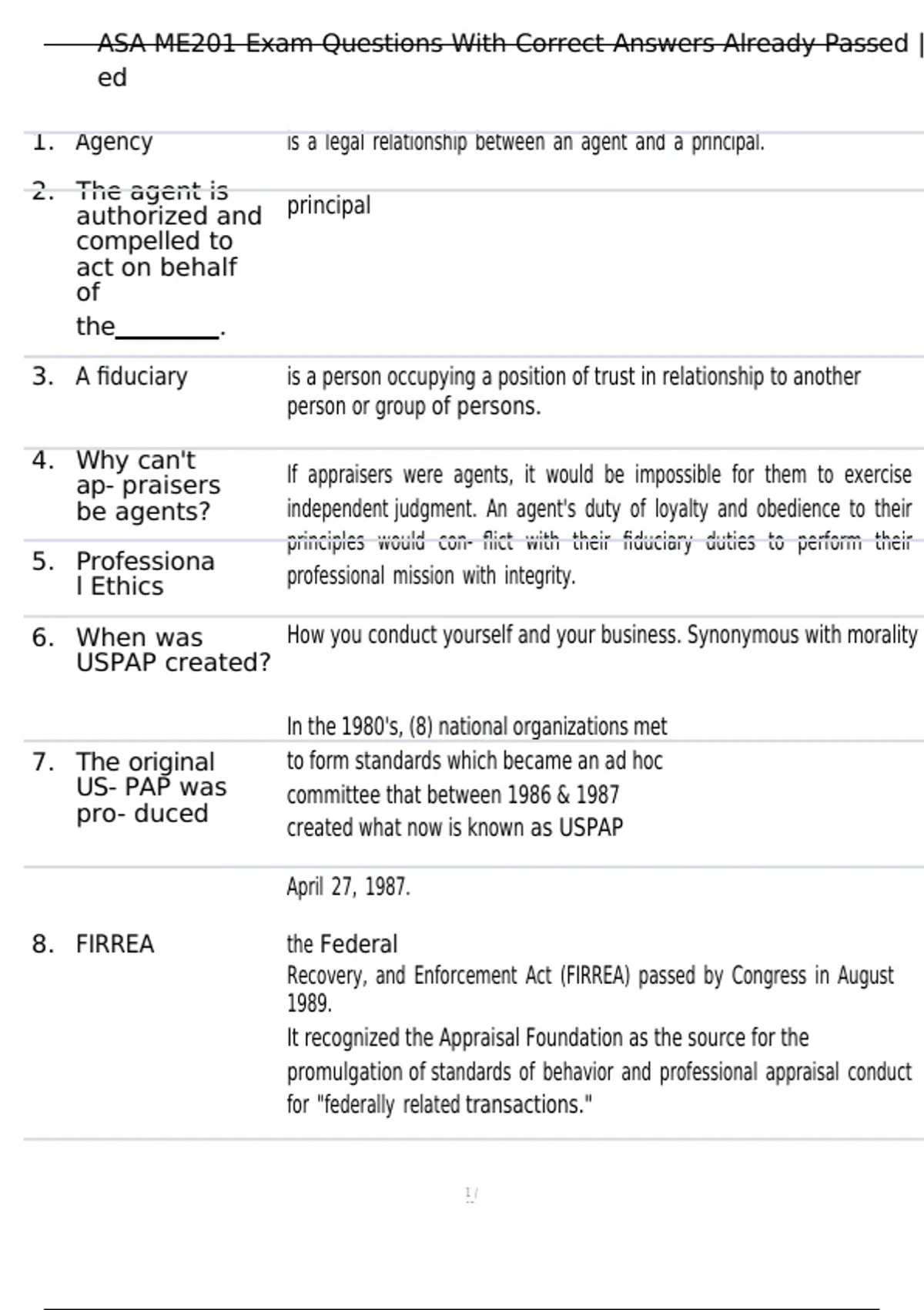 , ASA ME201 Exam Questions With Correct Answers Already Passed |