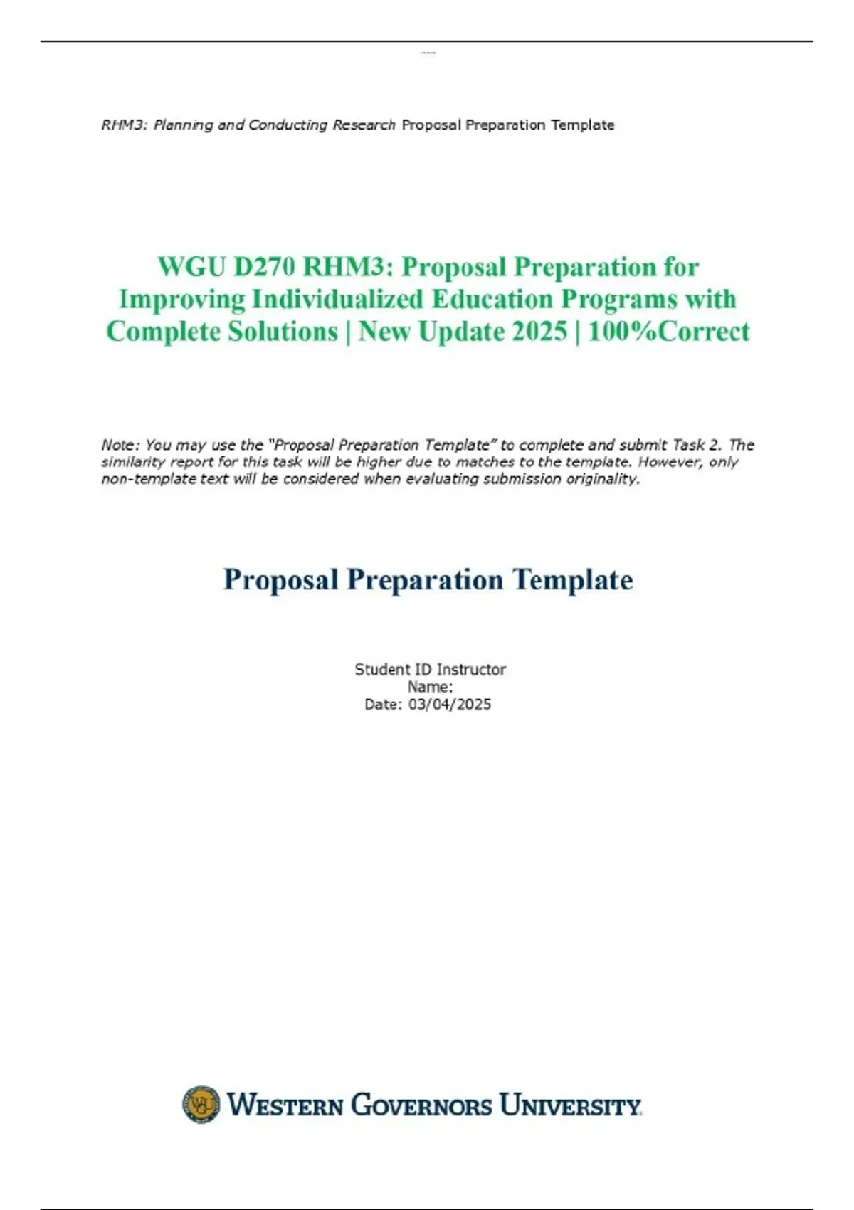 WGU D270 RHM3: Proposal Preparation for Improving Individualized Education Programs with Complete Solutions | New Update 2025 | 100%Correct