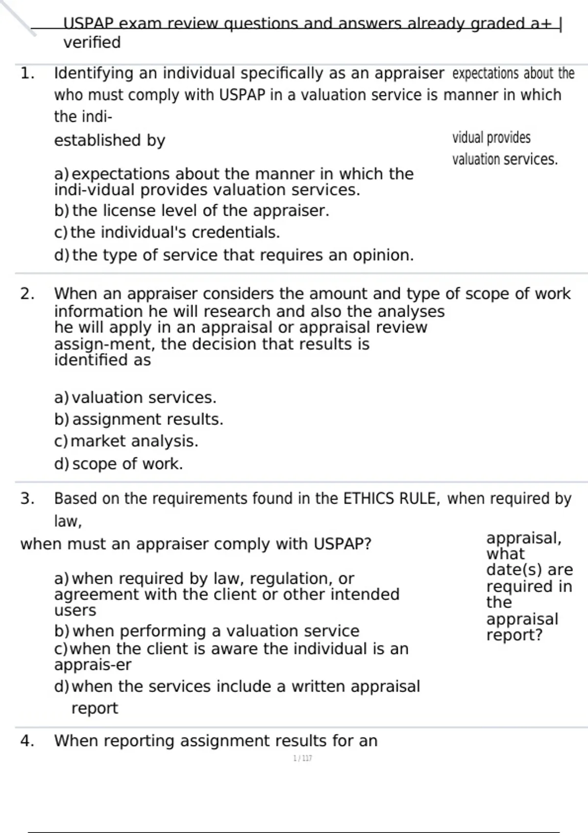 , USPAP exam review questions and answers already graded a+ |