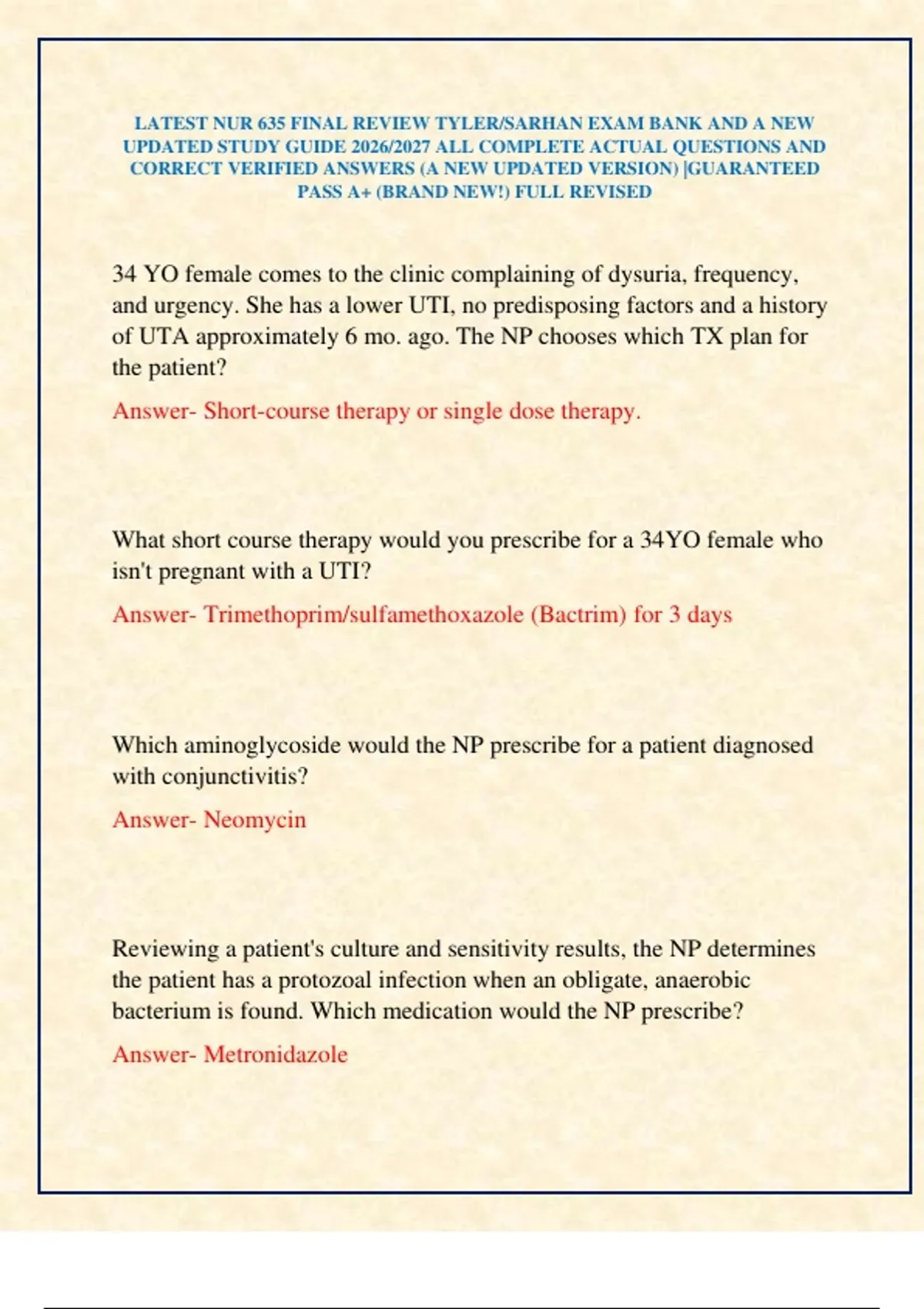 UPDATED STUDY GUIDE 2026/2027 ALL COMPLETE ACTUAL QUESTIONS AND