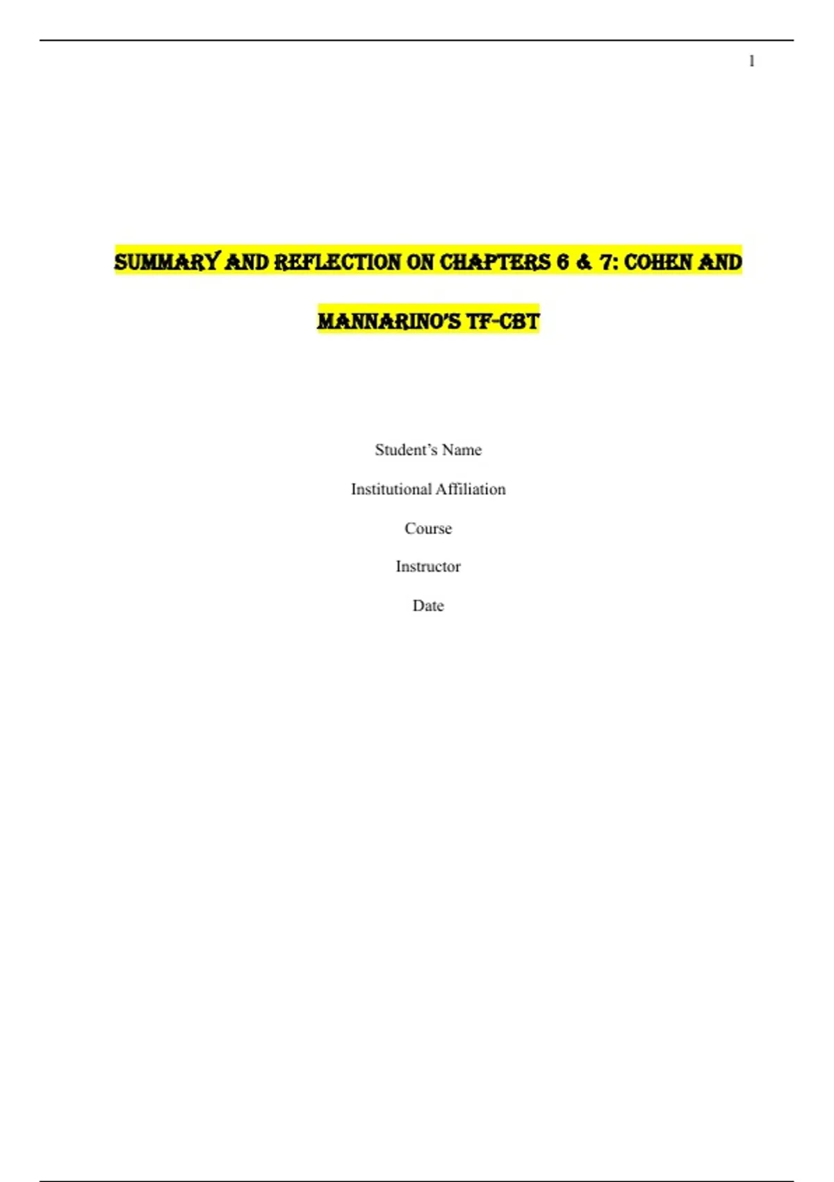 Summary and Reflection on Chapters 6 & 7: Cohen and Mannarino’s TF-CBT