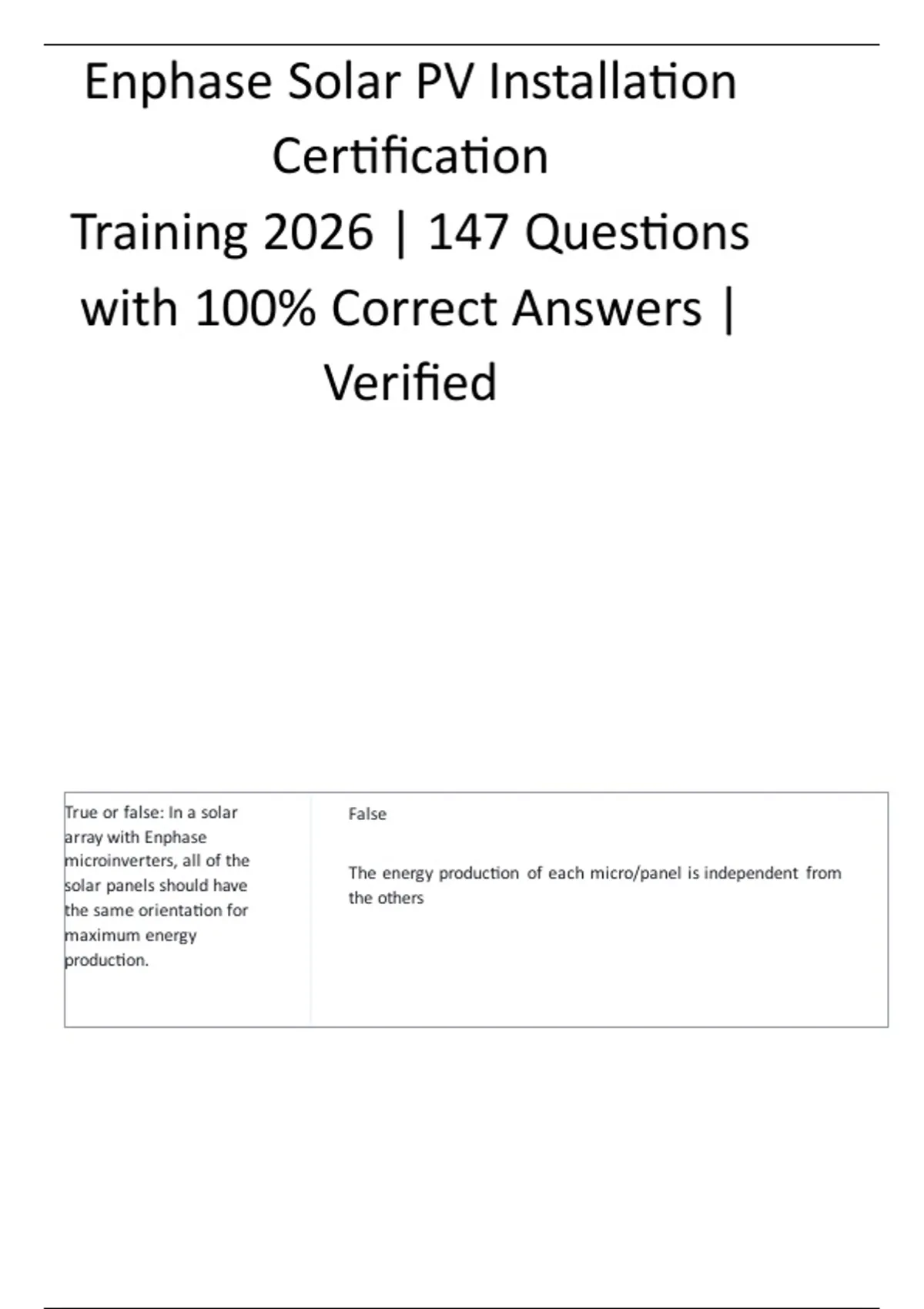 Enphase Solar PV Installation Certification Training _ 147 Questions with 100% Correct Answers _ Verified