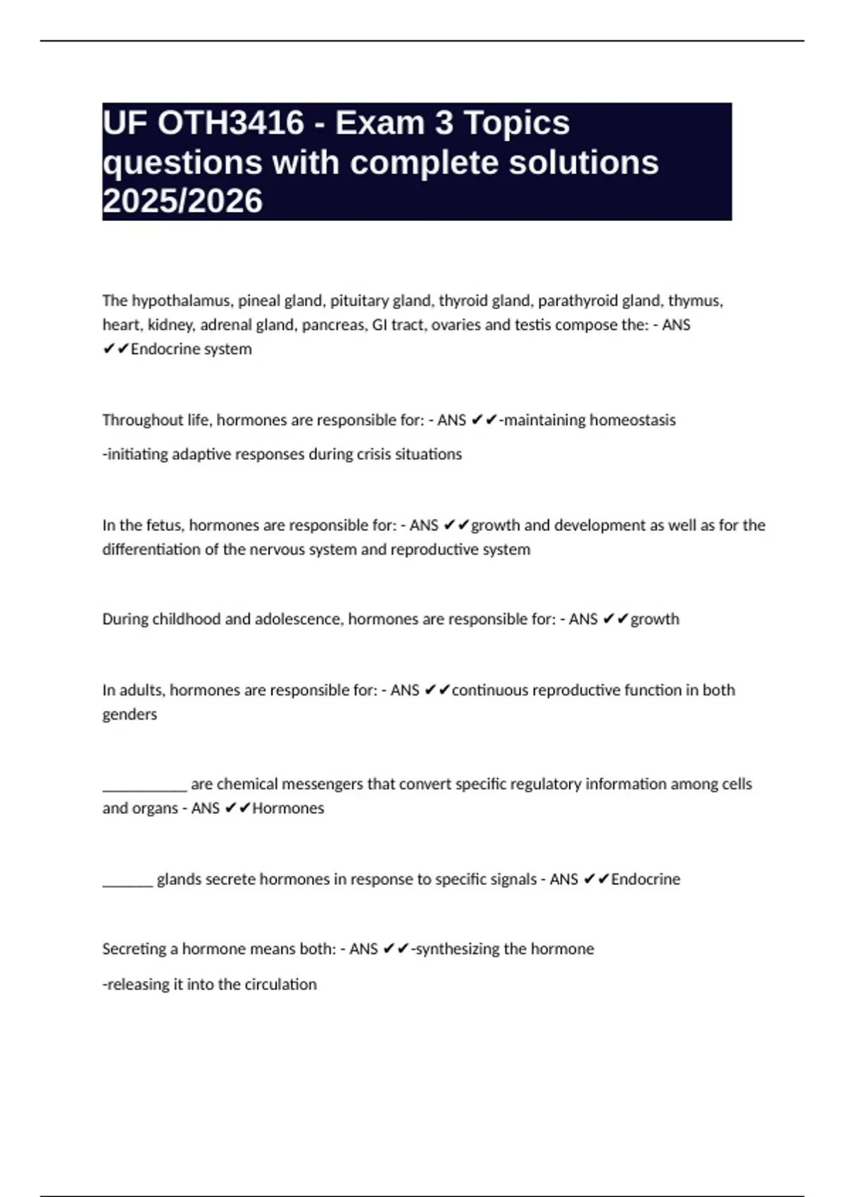 Throughout life, hormones are responsible for: - ANS ✔✔-maintaining homeostasis