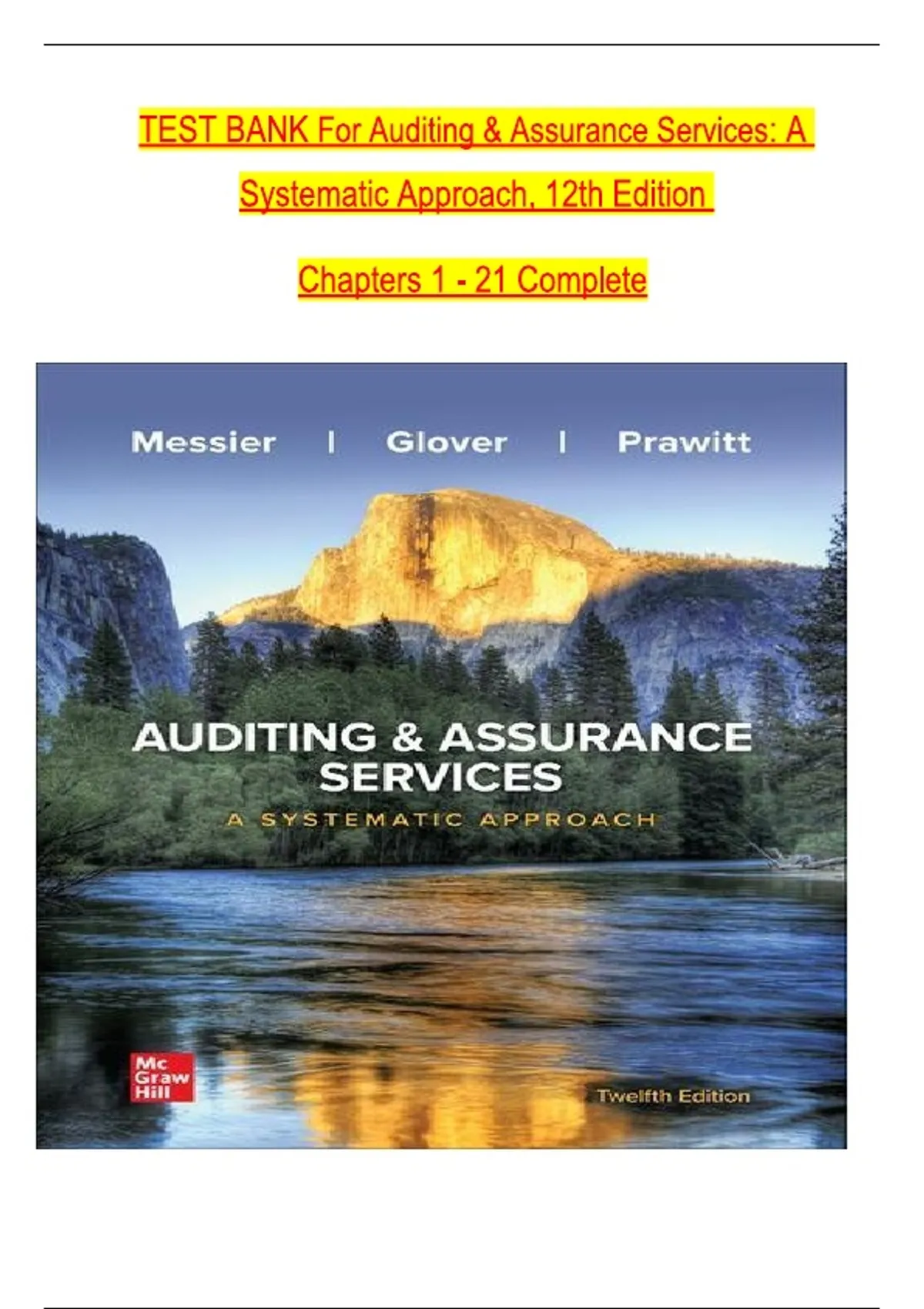 TEST BANK For Auditing & Assurance Services: A Systematic Approach, 12th Edition By William Messier Jr, Steven Glover, Verified Chapters 1 - 21, Complete Newest Version